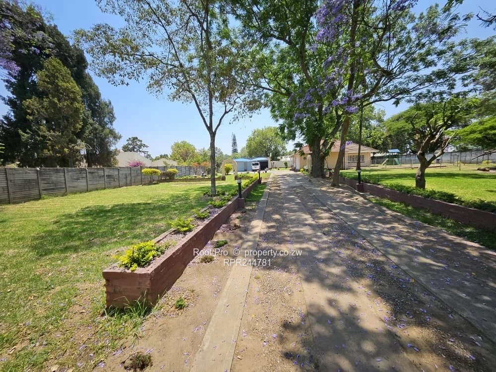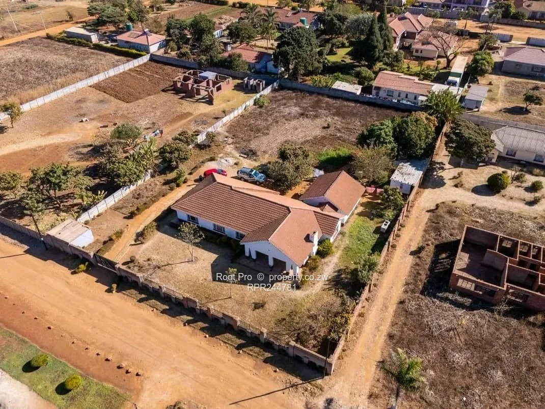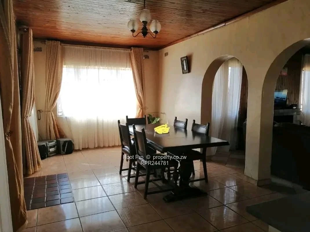 Spacious family home on a full, walled 2,000 m² stand in Knowe, Norton — 4 bedrooms, 2 bathrooms, 520 m² of comfortable living. Arrive down a long, tree-lined driveway with raised garden beds and ample off-street parking; aerial views show the property’s generous footprint and secure perimeter wall with gated entrance. Inside, classic character comes through: a tiled dining room with wooden ceiling and elegant archways, and a warm lounge featuring a fireplace, parquet floors and porthole windows that add charm and natural light. The single-level layout is practical and flowing, ideal for family living and entertaining, while an attached double garage and separate outbuilding provide storage or staff-quarter potential. Large, well-kept gardens offer space for children, a pool or further landscaping. Located in a peaceful Norton neighbourhood with easy access to local amenities, this home blends solid construction, period details and scope for modernisation — a rare, roomy plot ready for your personal touches.