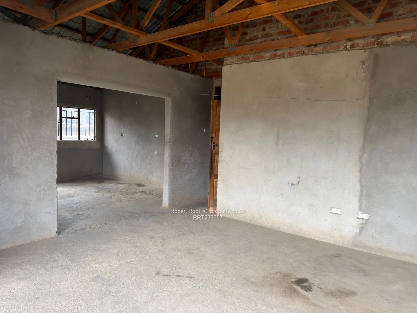 Charming solid single-storey home in Southview Park, Harare South — 4 bedrooms, 2 bathrooms on a compact 240 m² stand with a 150 m² building footprint. This property presents excellent value for a family or investor: a traditional bungalow with a red tiled roof and covered veranda, secure barred windows and space for off-street parking at the front (as seen in the photos). Interiors show good bones with plastered walls and generous room proportions awaiting your finishing touches — exposed roof trusses and open ceilings offer an opportunity to install modern ceilings or create vaulted living spaces. The layout includes a central living area connecting bedrooms and a simple but functional bathroom; a second bathroom and WC are present. Neat side passage with water storage tanks already in place, plus a small private garden at the rear for children or container gardening. With cosmetic upgrades — floors, fitted kitchen, and ceilings — this property can be transformed into a comfortable family home or high-demand rental. Conveniently located in Harare South, within reach of local shops and transport routes. Priced to reflect the renovation potential — schedule a viewing today to explore the possibilities.