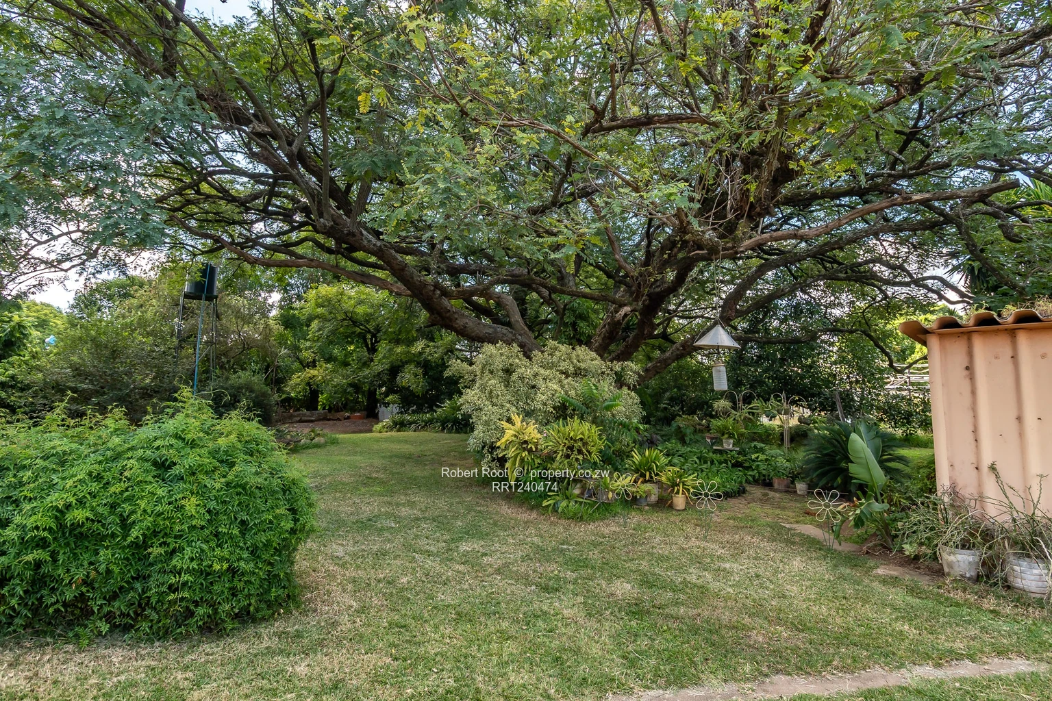 >> Garden: Lush, mature garden with established trees with remnants of a previous agro project.