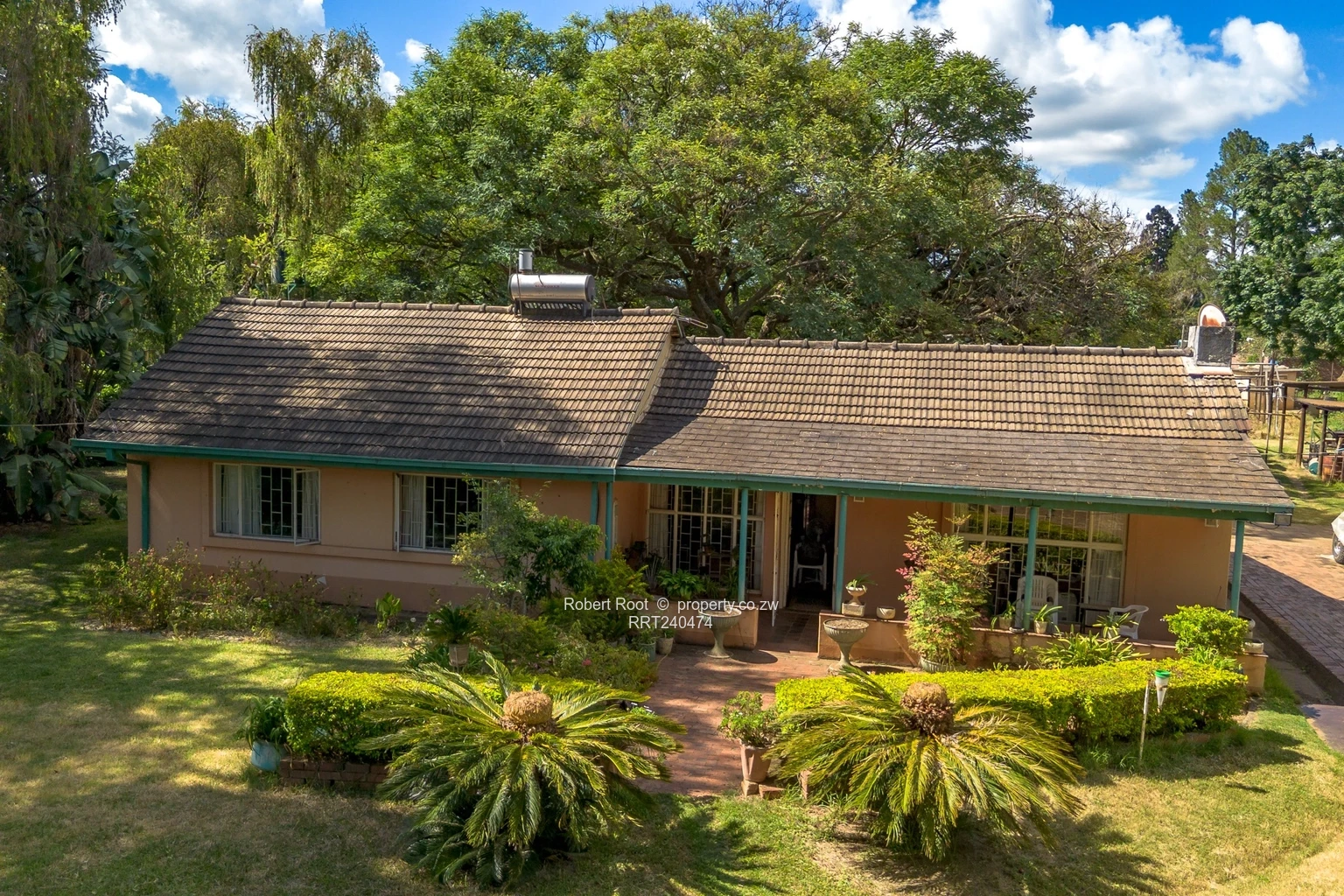>> Main Residence: Solid brick-under-tile home with 4 bedrooms, 2 bathrooms, kitchen, dining room, lounge, and a relaxing veranda.