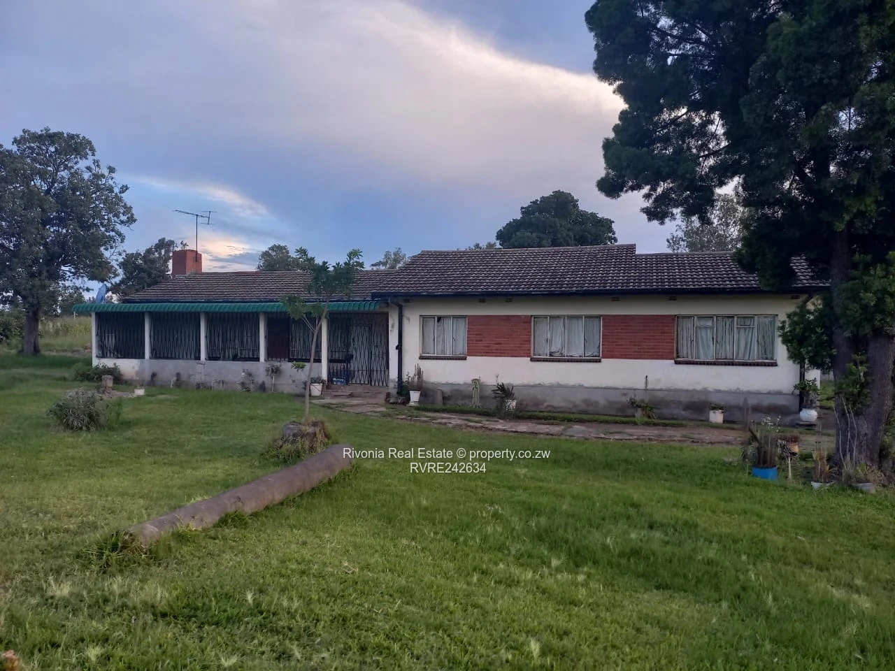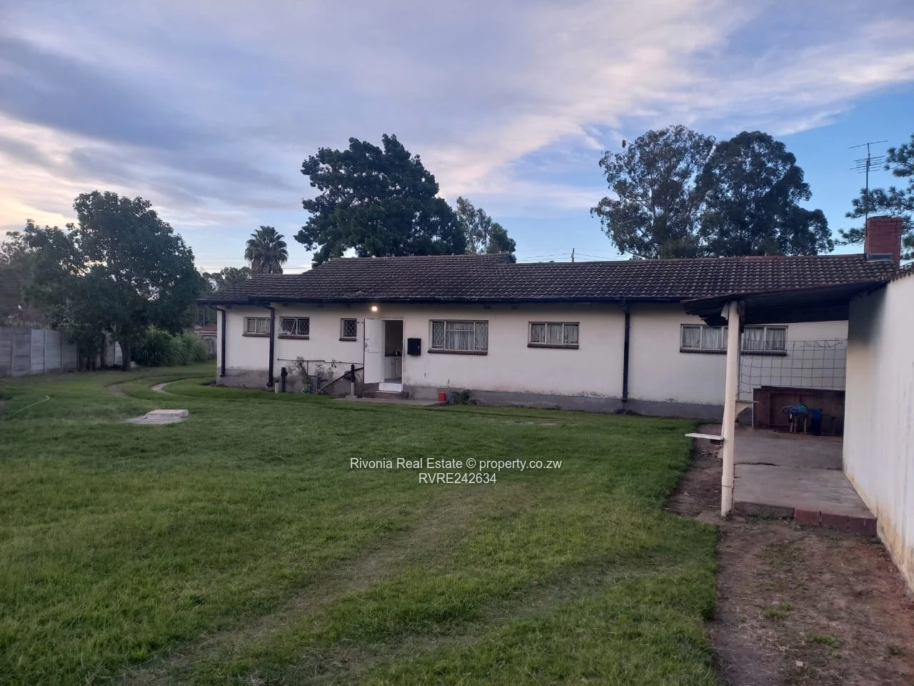 Spacious single-storey family home on a generous 4,300 m² stand in sought-after Hatfield, Harare South — ideal for buyers seeking space, privacy and development potential. This solid 500 m² dwelling offers 4 bedrooms and 2 bathrooms arranged along a long ranch-style layout with a covered veranda and large windows protected by security bars (see photos). The property features wide lawns front and back, mature trees, a double dirt drive leading to the house and plenty of room for parking, extensions or a separate staff/granny unit. The back yard includes a cleared area ready for landscaping, a vegetable garden or additional structures. Exterior shows durable plaster finish and tiled roof with a well-maintained compound wall providing good security and seclusion. A reliable borehole supplies the property, ensuring water independence for household use and gardens. With easy access to schools, shops and transport routes in Harare South, this home is perfect for a growing family or an investor looking to subdivide or renovate into multiple units. Viewings by appointment — contact us to arrange a tour and explore the full potential of this expansive Hatfield property.