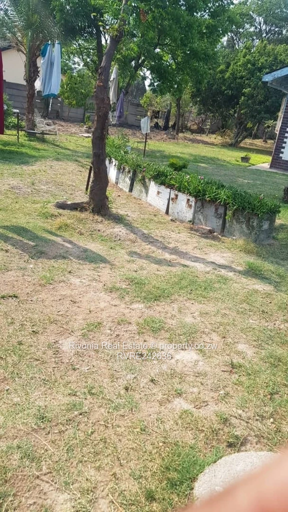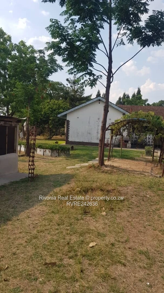 Charming single-storey family home on a generous 4,052 m² stand in Prospect, Harare South — ideal for gardeners, entertainers or a developer with vision. This 400 m² home offers 3 bedrooms and 2 bathrooms and combines original character with scope for modernisation. As seen in the photos the house has a white plaster exterior with brick quoining and a tiled pitched roof, a screened veranda ideal for relaxing, and a vine-covered pergola/arch in the garden that creates a lovely shaded seating area. The grounds feature mature shade trees, expansive lawn space, concrete raised flowerbeds and a separate outbuilding/garage — plenty of room for a pool, vegetable gardens or extensions. Reliable water supply from an on-site borehole, long drive-in access and ample parking complete the picture. A peaceful Prospect location with excellent potential to create your dream family home or a profitable subdivision project. Viewing by appointment.