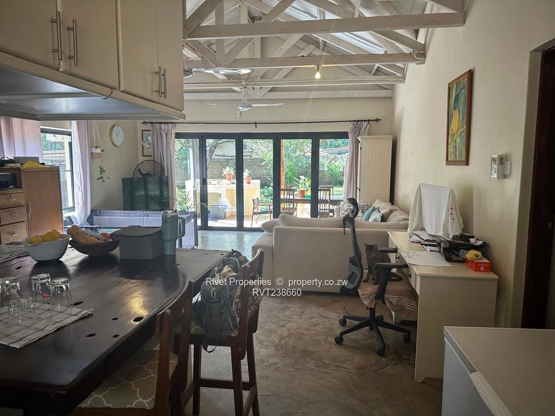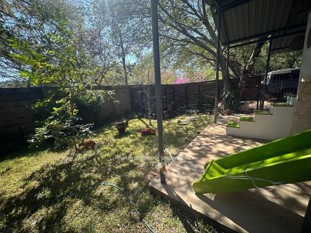 VERY NEAT HOUSE FOR SALE IN THE LEAFY SURBURBS OF VICTORIA FALLS COMPRISING OF MAIN HOUSEWITH 3 BEDROOMS SEPERATE BATHROOMAND TOILET OPEN PLAN LOUNGE DINNING KITCEN ENCLOSED VERANDAH