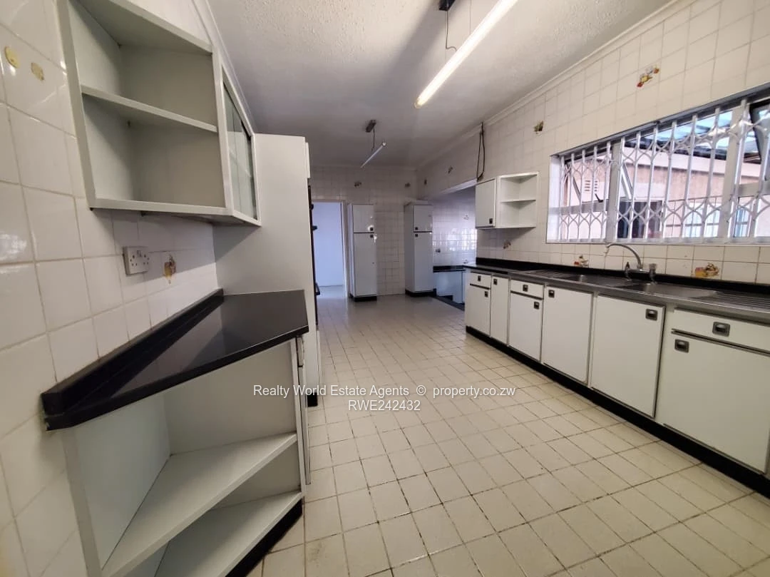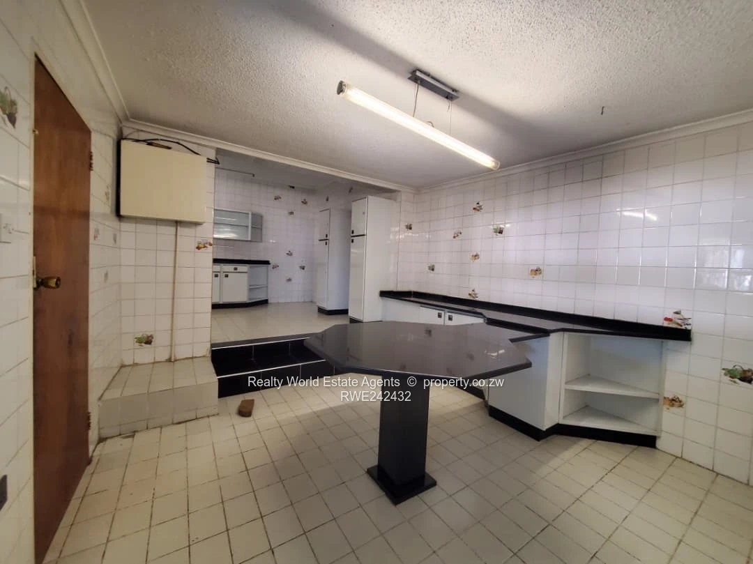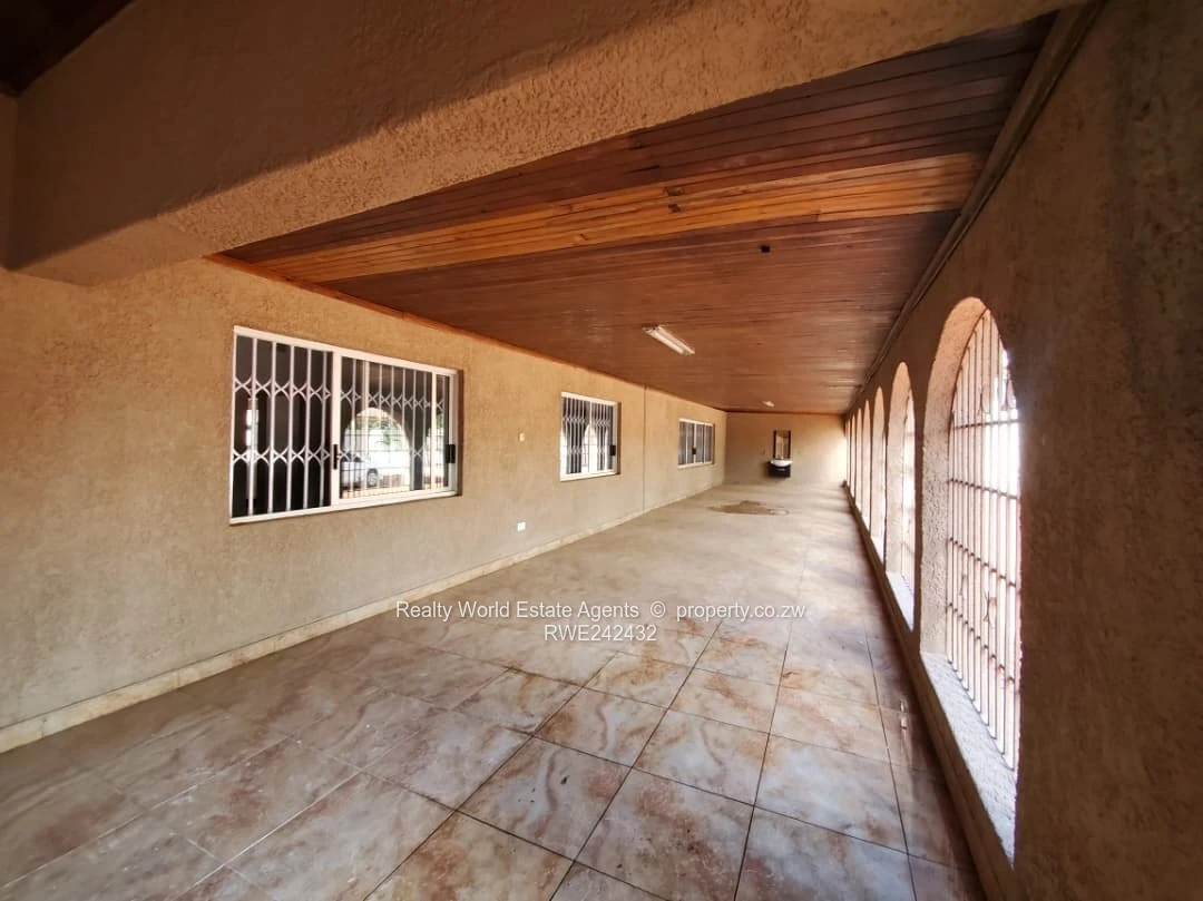 Conveniently located close to all amenities, this spacious property sits on a generous 800m² stand with full title deeds. The home features four bedrooms (main with ensuite), a lounge, sunken dining area, kitchen with BICs, and office/study. Flooring is a combination of tiles and fitted carpets, complemented by a family bathroom. Outside, you will find staff quarters and a tiled entertainment area leading to a large shaded space. Property is also suitable for Commercial use.