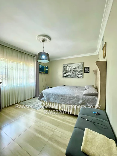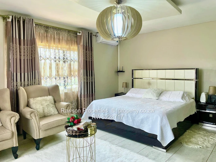 Don't miss out on this exciting opportunity to own a home in a modern, fast developing neighbourhood in Mt pleasant heights. This beautiful English Stylish home with landscape gardens well maintained. The main house comprising of spacious 6 bedrooms, all 5 beds with ensuites,2 lounges with fireplace, separate dining, very large modern fitted kitchen, oven and hob, scullery, gas and electric stove,walk-in pantry, storeroom, gym, ironing room attached to maid quarter with own entrance, shower and toilet,2 solar geysers,solar system 10kva,electric fence, arlam system in place for security, borehole, 5000litre water tank, double lock up garage,gazebo for entertainment,2 carports, paved yard fruit trees, electric gate, intercom with camera,walled and gated sitting on 1500sqm.