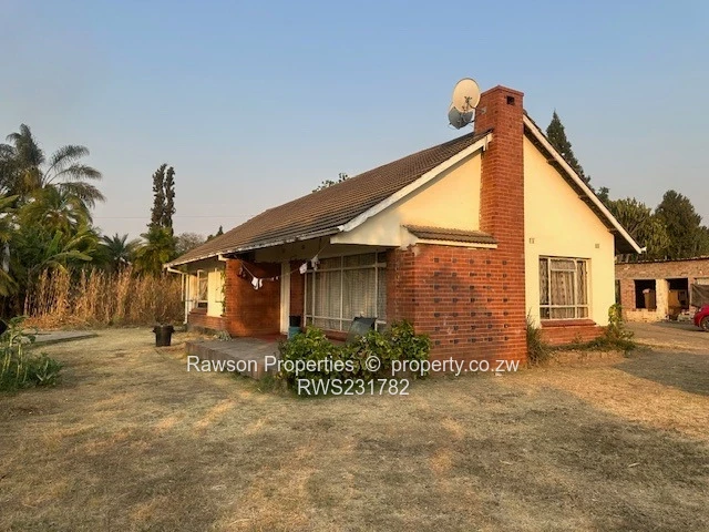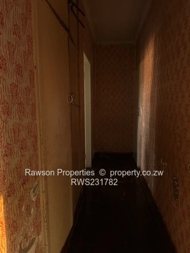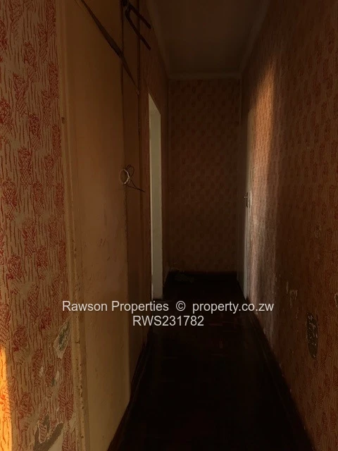 Solid brick bungalow on a generous 3,600 m² stand in Marlborough, Harare West — 3 bedrooms, 1 bathroom, approximately 300 m² under roof. As seen in the photos, the home presents a classic red-brick façade with a prominent chimney, tiled pitched roof and a wide front verandah that overlooks expansive lawns and mature palms. Large windows bring natural light into the living spaces; original parquet floors and character wallpaper remain in the internal hallway, offering a great base for tasteful renovation.