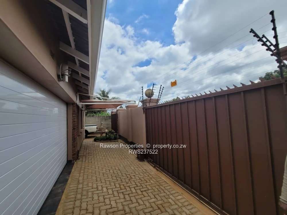 *Walled and gated, razor wire and electric fence,Borehole, Security alarms, paved, neatly manicured garden, inside and Outside Water Sprinklers *2 automated gates and double lockup electric garage.*
