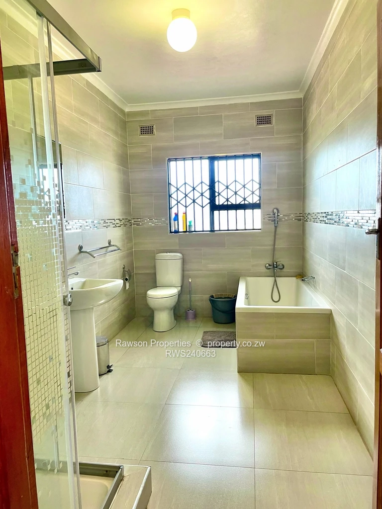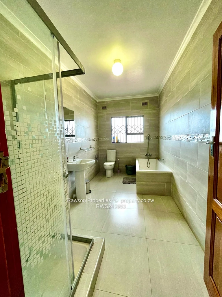 Accommodation includes four spacious bedrooms, two of which are en-suite. The master suite features a luxurious jacuzzi, generous built-in cupboards, and a large sliding door that opens onto a private verandah overlooking the garden. All bedrooms enjoy tranquil garden views, enhancing the sense of retreat.