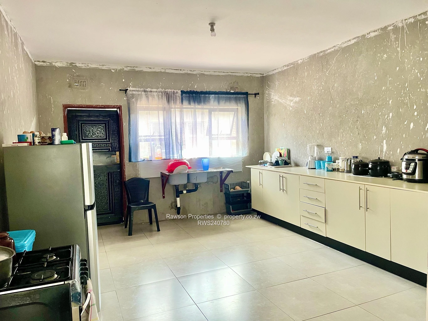 The kitchen is incomplete, giving you a chance to finish it to your taste.
