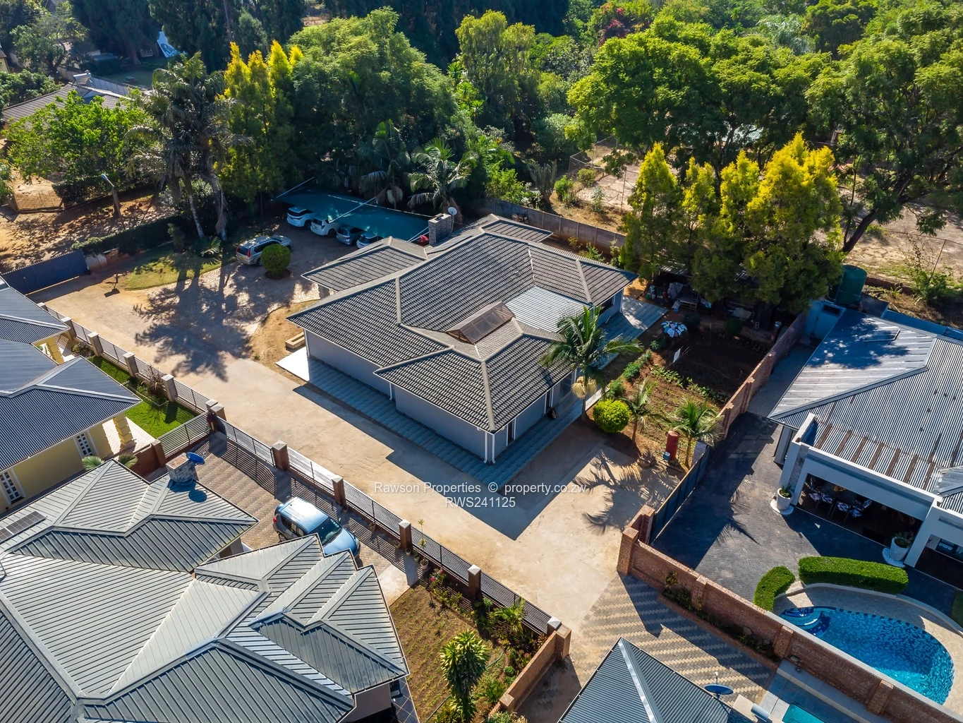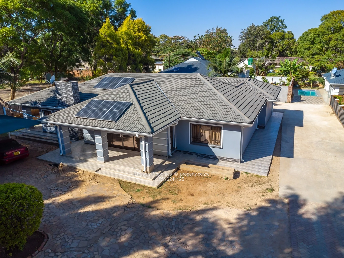 Additional highlights include a fish pond, a 5kVA solar backup system, a reliable borehole, and three carports.