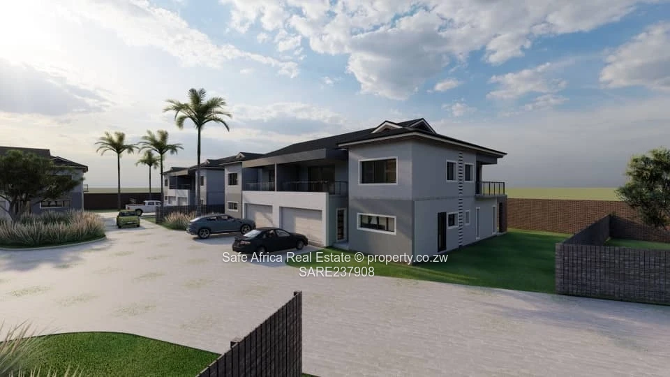 Discover contemporary living at Hogherty Hill, Harare North — a secure, palm-lined gated estate showcased in the images. This modern 4-bedroom house (300 m² building on a 300 m² stand) offers a smart family layout across two levels with generous balconies, private garden, and double garage as seen in the rendered aerials. The development features a striking entrance wall and automated gate, wide paved driveways, landscaped communal courtyards and mature palms that create a resort-like arrival experience. The home’s crisp façade, large windows and covered terraces flood interiors with light while providing seamless indoor–outdoor flow for entertaining. Ground-floor living areas open to a private lawn; upstairs hosts well-proportioned bedrooms with balcony access and thoughtful finishes. Ideal for families seeking security, low-maintenance luxury and easy access to Harare North amenities. Contact us today to arrange a viewing and secure your place at Hogherty Hill.