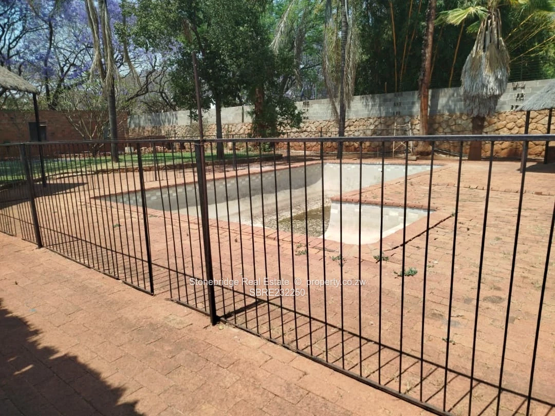 Outside, a verdant oasis unfolds – a luscious garden sanctuary perfect for alfresco moments or contemplation. A borehole is there to ensure self-sufficiency, complemented by a double lock-up garage and dedicated servants' quarters. The swimming pool is currently non functional but could become a sparling swimming pool that exudes beauty and elegance if revived.