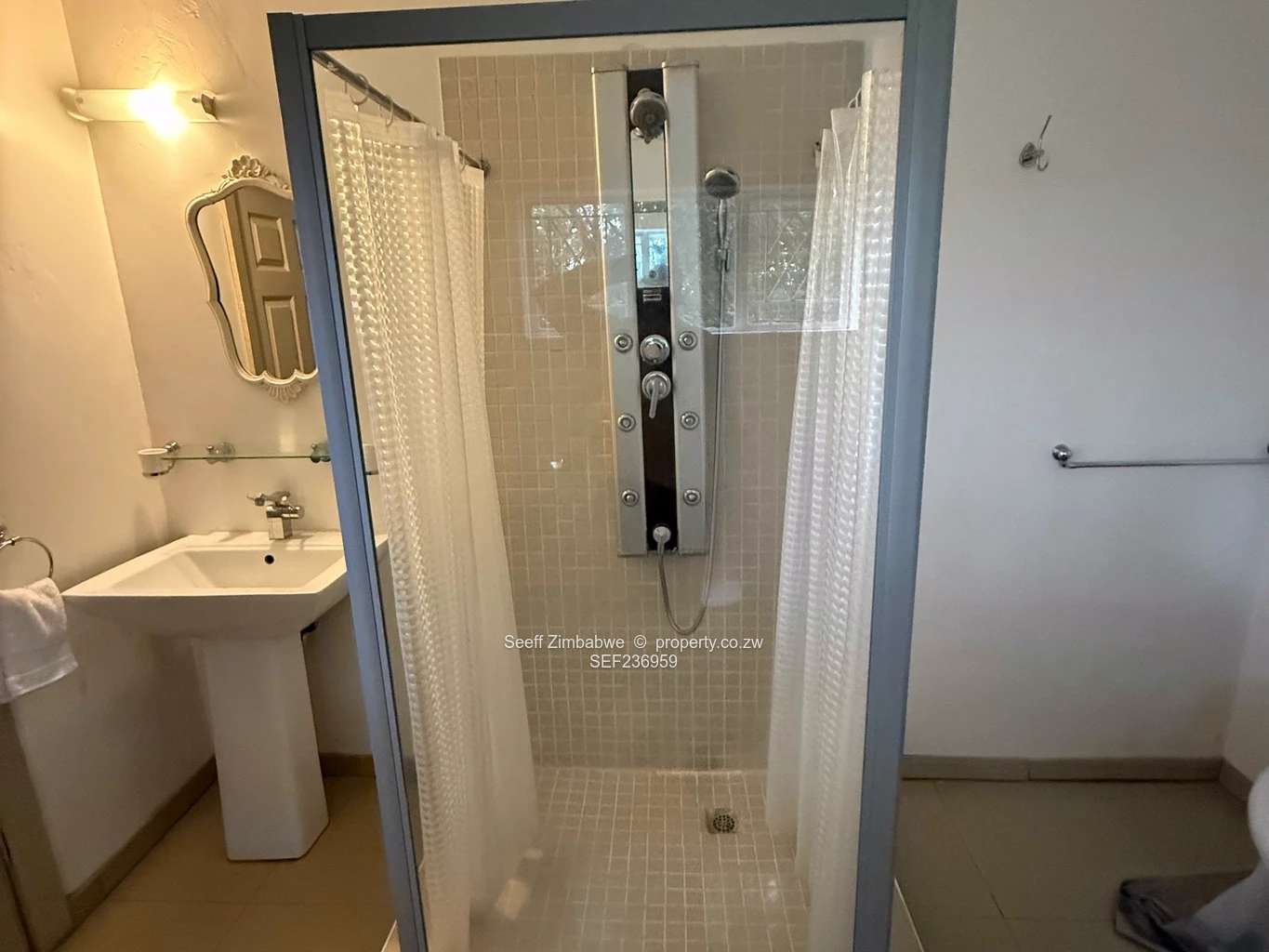 Outside, the "glitterstone" pool serves as the centerpiece of the garden, supported by a prolific borehole and a 5KVA solar system for seamless off-grid living.