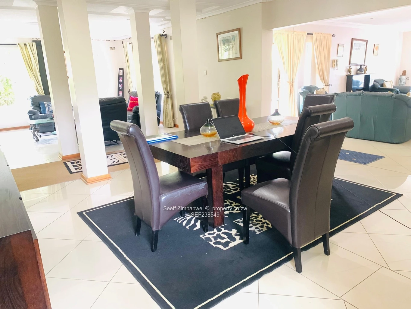 Nestled on a sprawling one-acre estate in the prestigious and leafy suburb of Glen Lorne, this magnificent 5-bedroom sanctuary is the epitome of sophisticated family living. Designed for those who appreciate the finer things in life, the residence welcomes you with three expansive, elegant lounges and a dedicated fitted bar that flows seamlessly into a spacious dining hall—creating an unrivaled atmosphere for hosting gala events or intimate family gatherings. The heart of the home features a sleek, modern fitted kitchen optimized for gourmet meal preparation. Accommodation is equally impressive, headlined by a grand master suite and four additional generously sized bedrooms (two ensuite) featuring premium built-in cabinetry. The outdoor experience is a true masterclass in landscaping, featuring a mature, manicured garden that surrounds a sparkling swimming pool. The entertainment wing is exceptionally well-appointed with a private courtyard, a stylish gazebo, and a fully equipped outdoor bar and braai area, all set against a meticulously paved perimeter. Beyond its beauty, the home offers complete self-sufficiency and security, boasting a 5kVA solar system, a prolific borehole with a 5000-litre tank, double staff quarters, and comprehensive parking including a double lock-up garage and a double shaded carport. Priced at $700,000 USD, this property is a rare fusion of luxury, functionality, and expansive space in one of Harare’s most sought-after pockets.