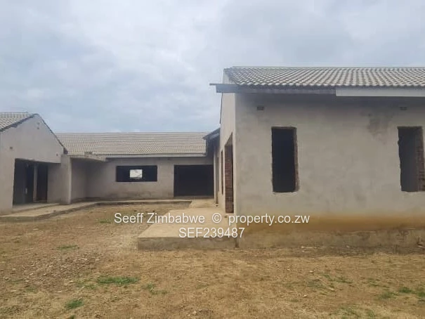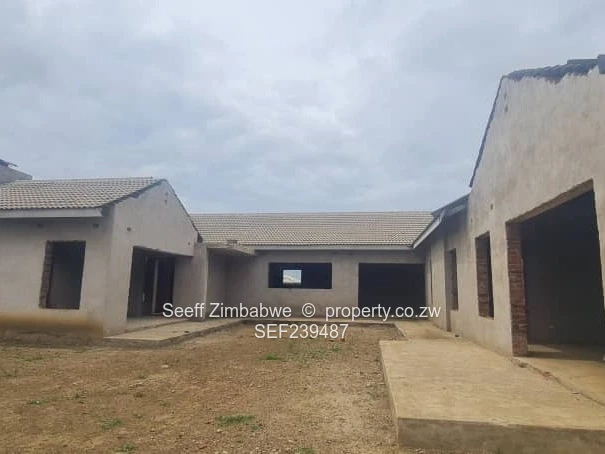Exceptional investment opportunity in Sandton Park, Harare West — spacious 5-bedroom, 3-bath home on a generous 3,196 m² stand with 385 m² under roof. Set in an L-shaped plan, this property is currently a plastered shell ready for finishing, giving you the freedom to create your dream home or a high-value rental conversion. The exterior photos show a tiled roof with multiple gables, wide window openings and a double-bay garage entrance (see photos). Interiors reveal high ceilings with exposed roof trusses and a built-in fireplace feature in the lounge — excellent bones for a bright, airy reception area. The layout includes a main en suite, a separate study/office and an internal courtyard that would frame a landscaped garden or a pool as indicated on the floor plan (floor plan included). Ample flat grounds offer space for entertainment areas, established gardens, additional outbuildings or secure boundary walls. With a large frontage and room for vehicular access, the double garage and parking are ideal for family life or tenants. Perfect for buyers who want to finish to their own specification and capture strong neighbourhood demand in Sandton Park. Contact us to arrange a site visit.