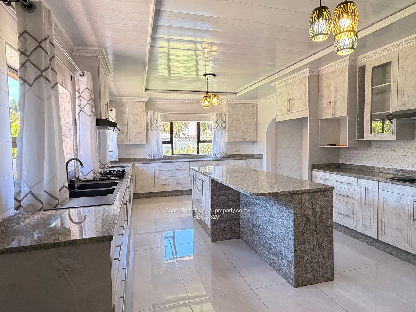 Designer Kitchen: Fully fitted with premium finishes, featuring a gas/electric stove combination, double oven, pantry, and a separate scullery.