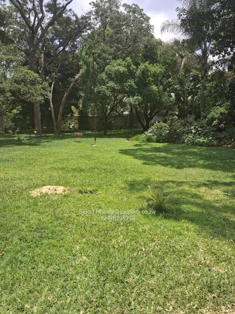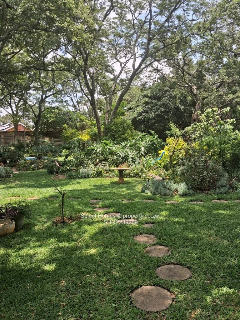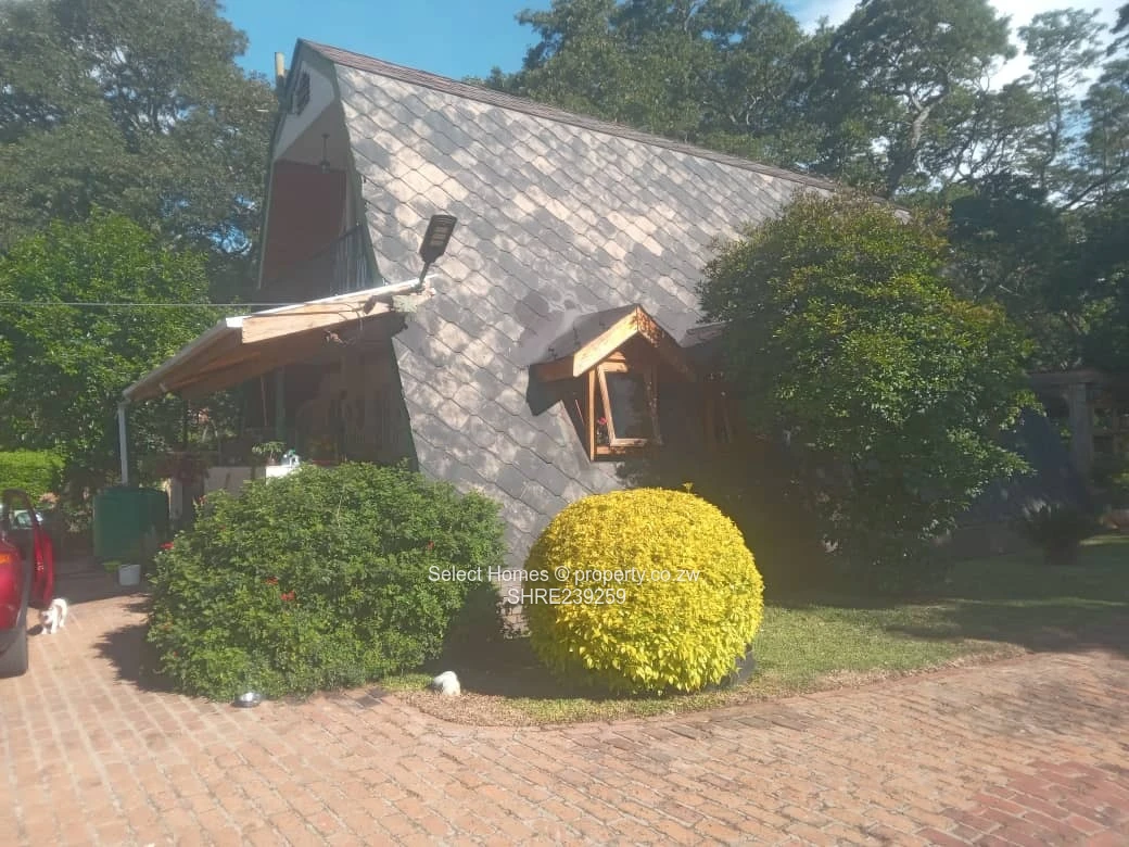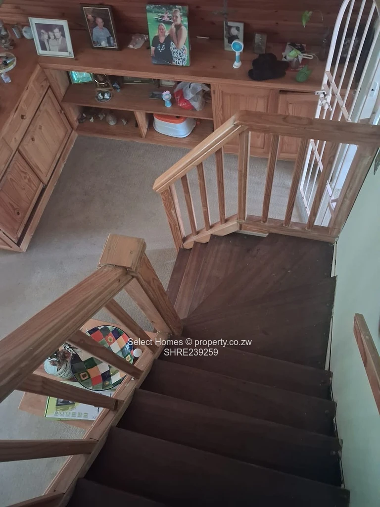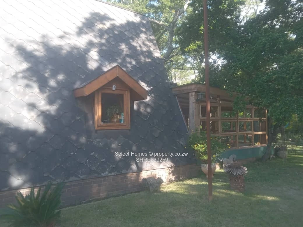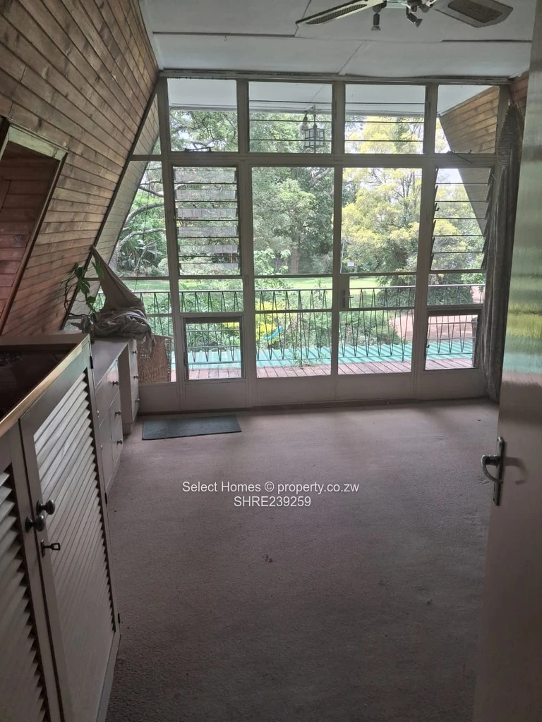 Upstairs there is a big double bedroom with a veranda looking out over the msasa trees