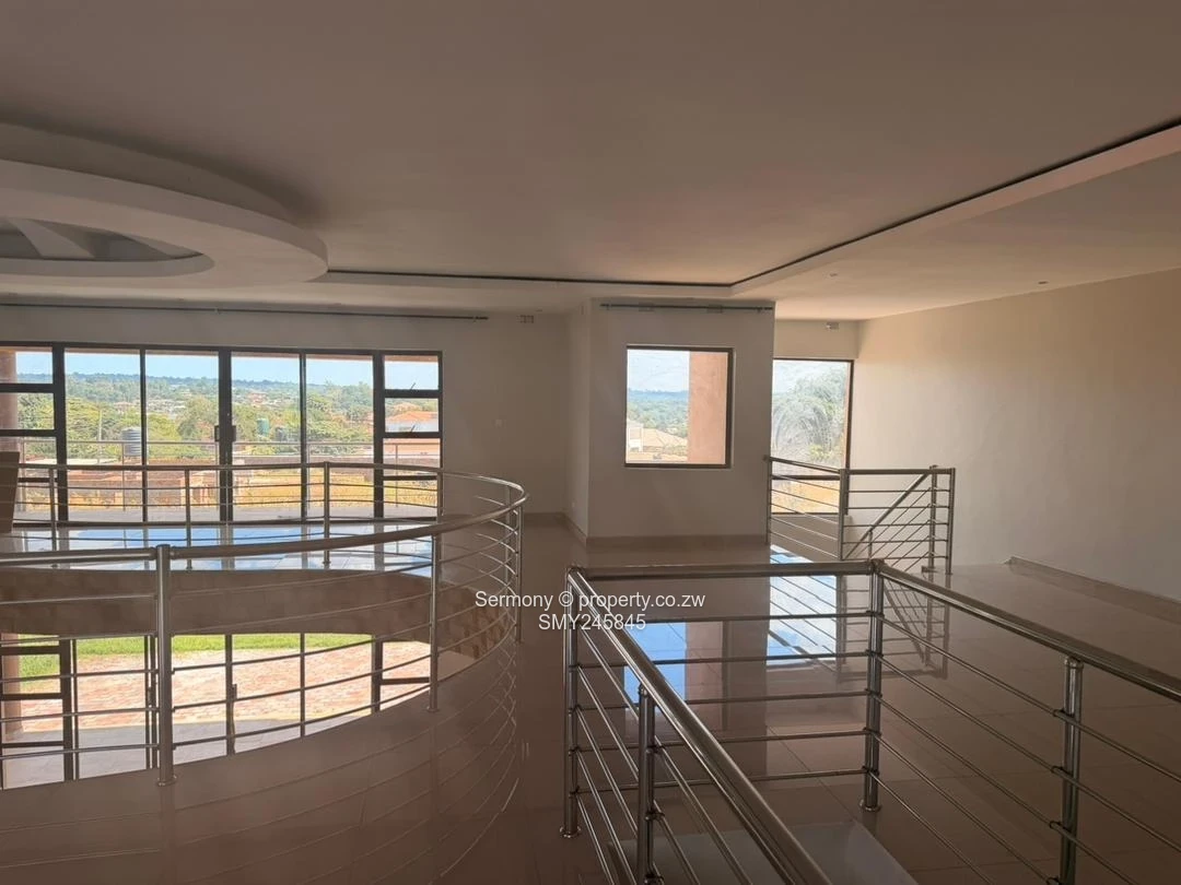 Upstairs, the home opens to another lounge, two balconies, and multiple bedrooms including a luxurious master suite with a private balcony, dressing area, and ensuite. Additional ensuite bedrooms and an entertainment area make this home ideal for large families or hosting guests.