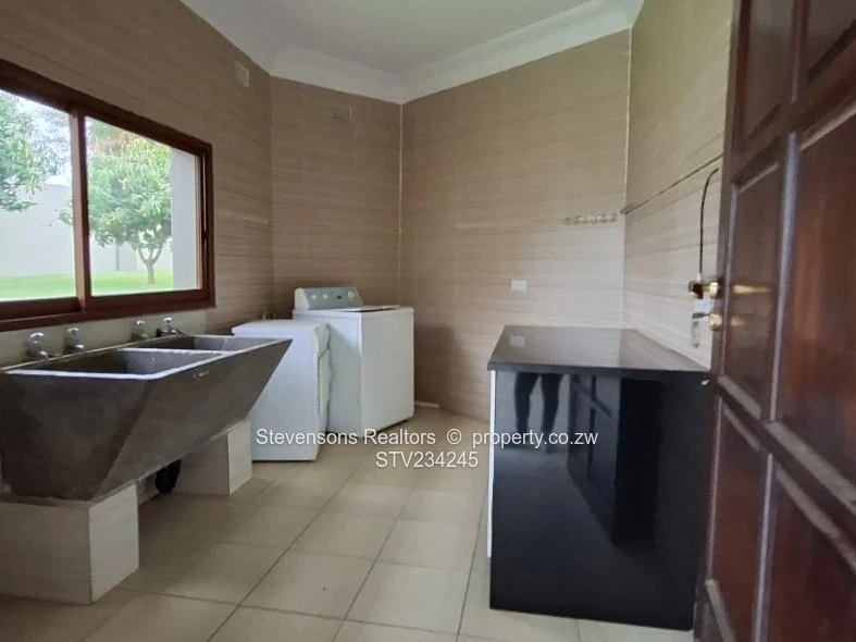At the back of the house there is a beautiful entertainment place that overlooks the swimming pool, a braai area and a fireplace, spacious bar area, sunny lounge, gym room, separate toilet and bath, working Sauna. The house comes with a staff quarters that contains 2 rooms, combined bathroom and toilet, fitted kitchen with a fridge. Quard lock up garage, functional swimming pool, very beautiful garden, 2 solar geysers, prolific borehole with 2*5000L water tanks, generator, guard room. There are cameras around the whole house. It is walled and gated with an electric fence. Paved driveway.