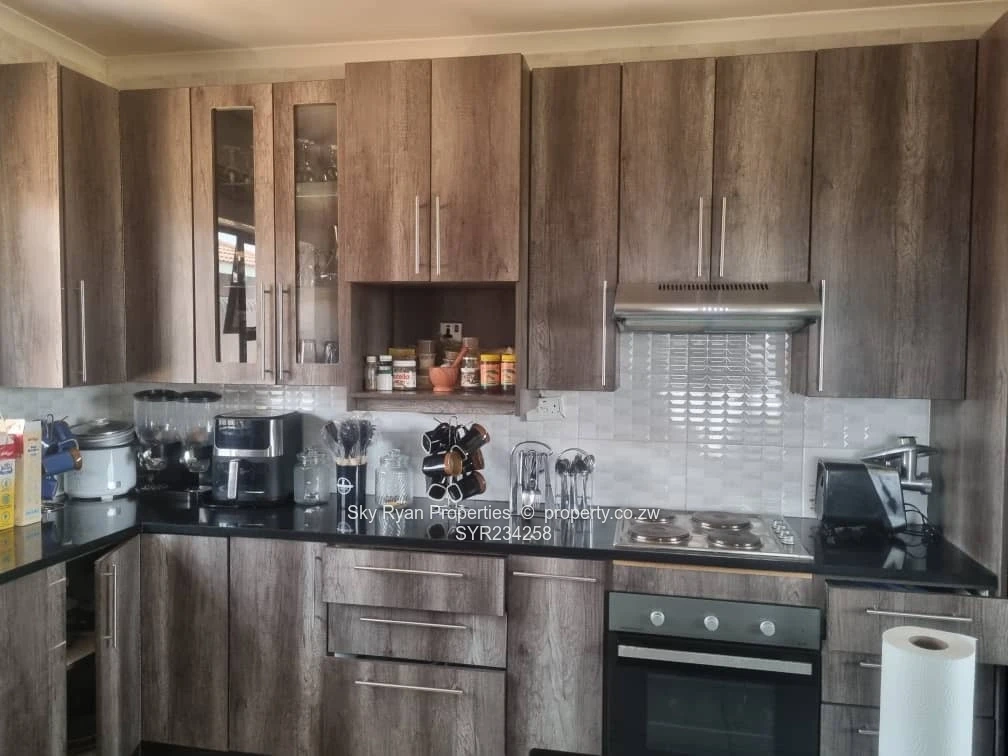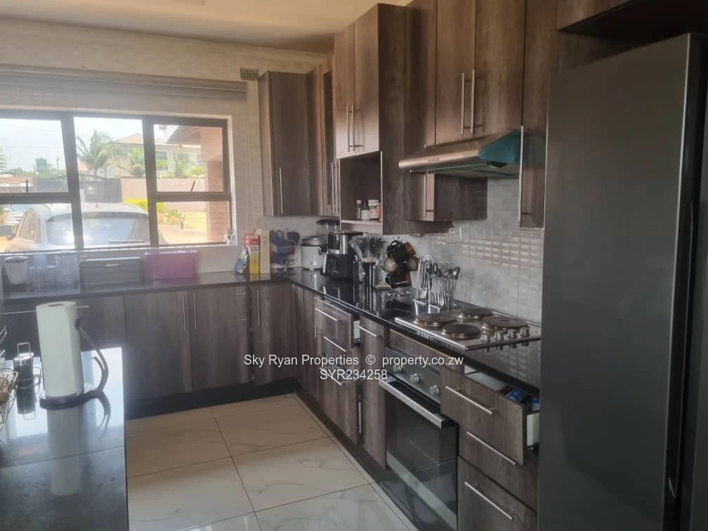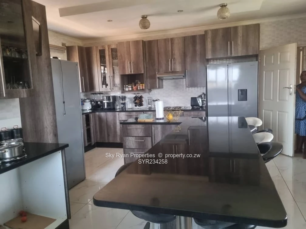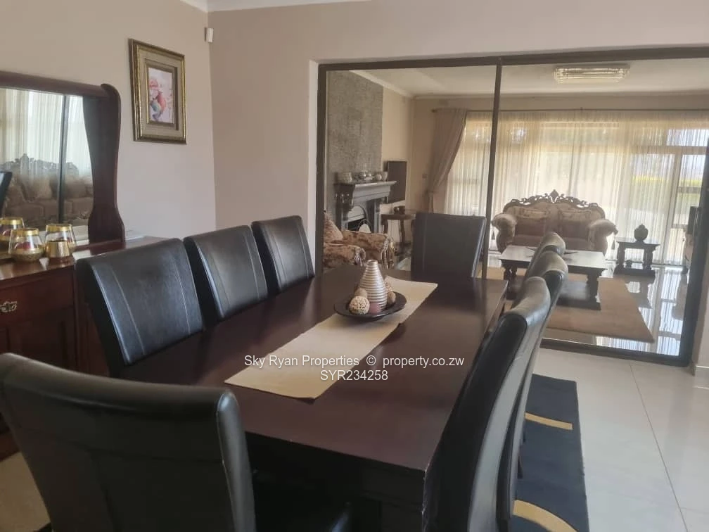 Brookview 370k. Solid 5 bedroom 2 mes house with separate toilet and bathroom, 2 lounges, dining room and fitted kitchen with breakfast nook and walk in pantry. Triple lock up garage with storeroom and toilet. Borehole, walled and gated on half an acre