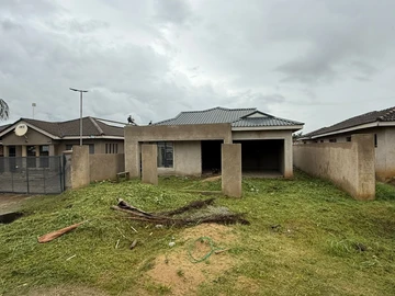 95% complete Pleasant valley 3beds mes lounge dining kitchen, 2 bedrooms with ensuite, main bedroom with his and her walk in closet, bath and toilet on 376sqm, a cottage but not on plan, paved, walled, 5000litre water tank