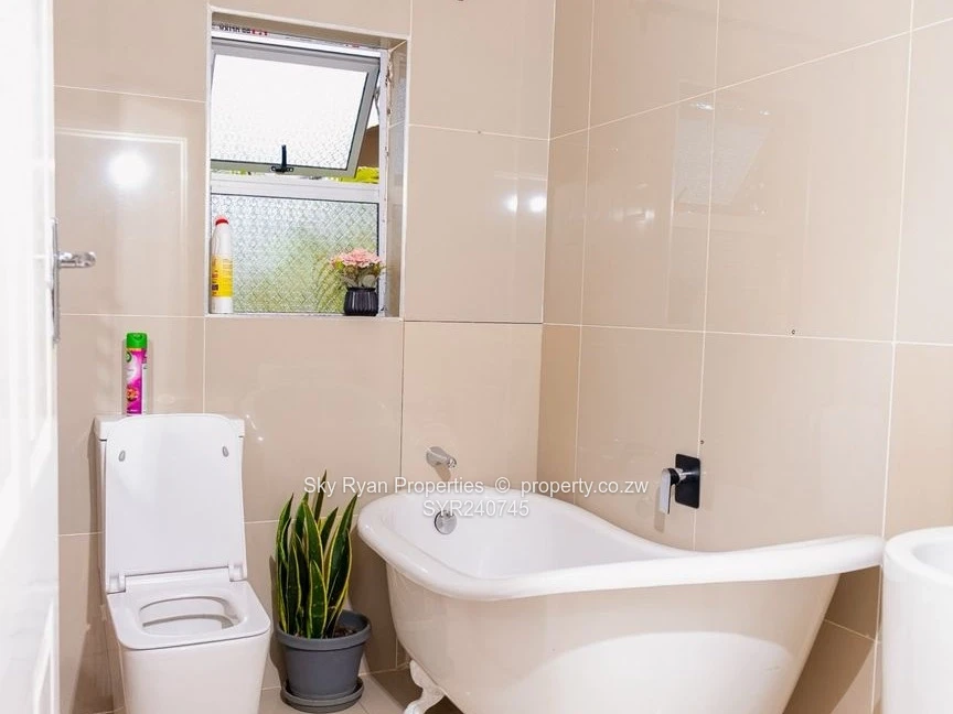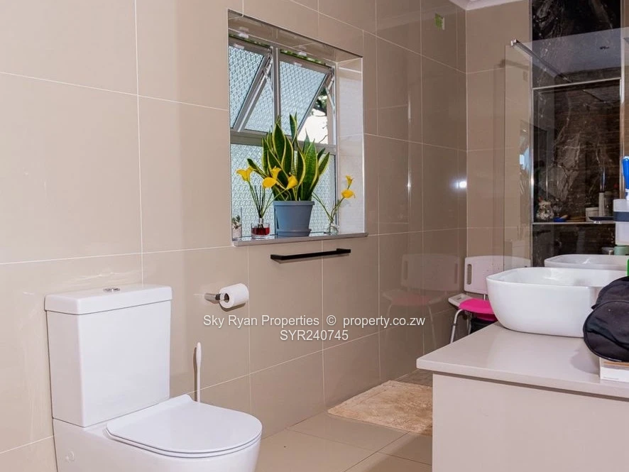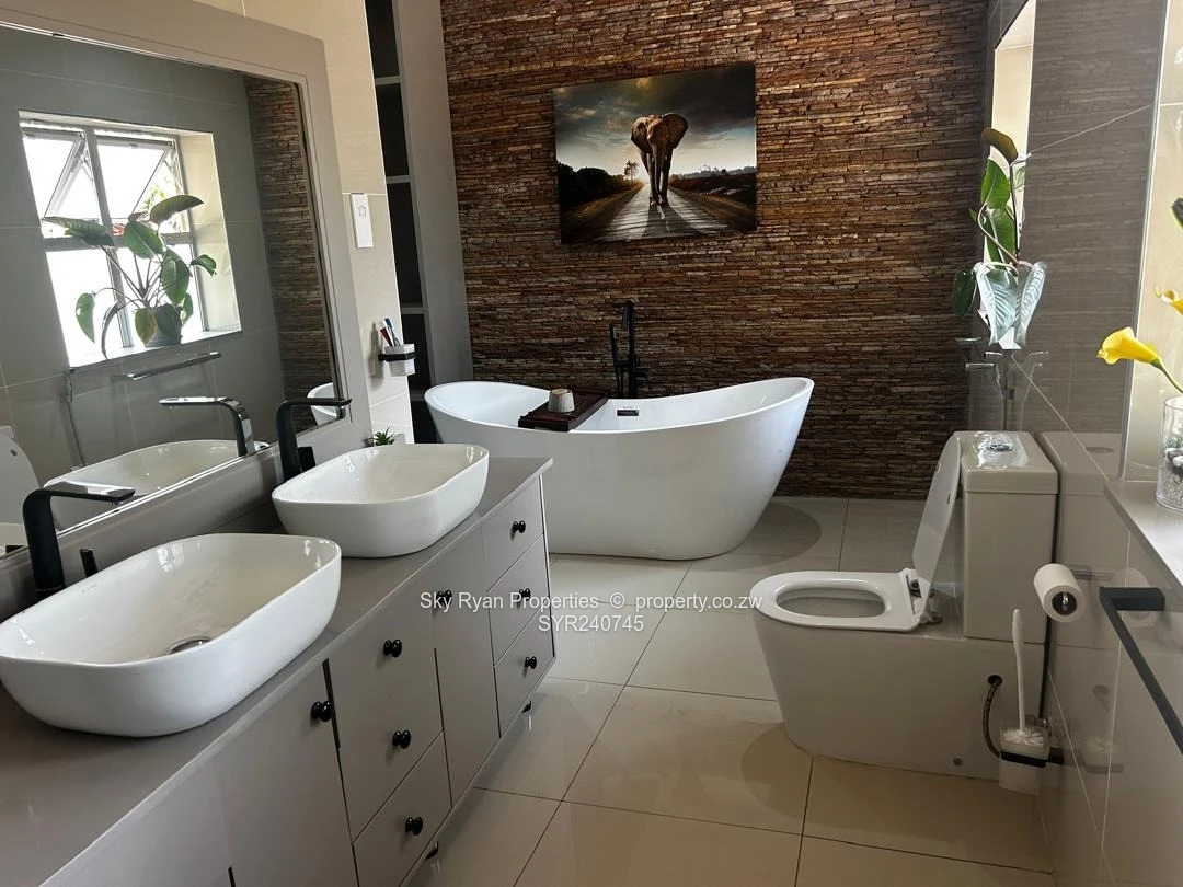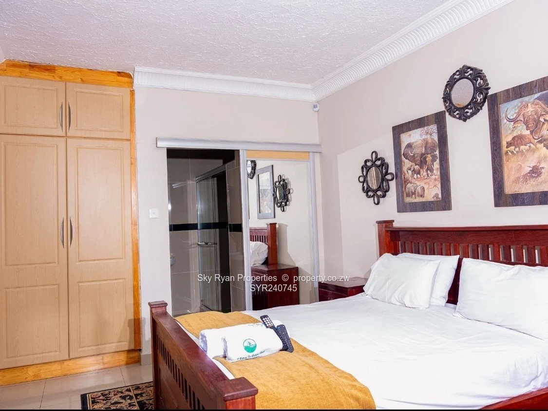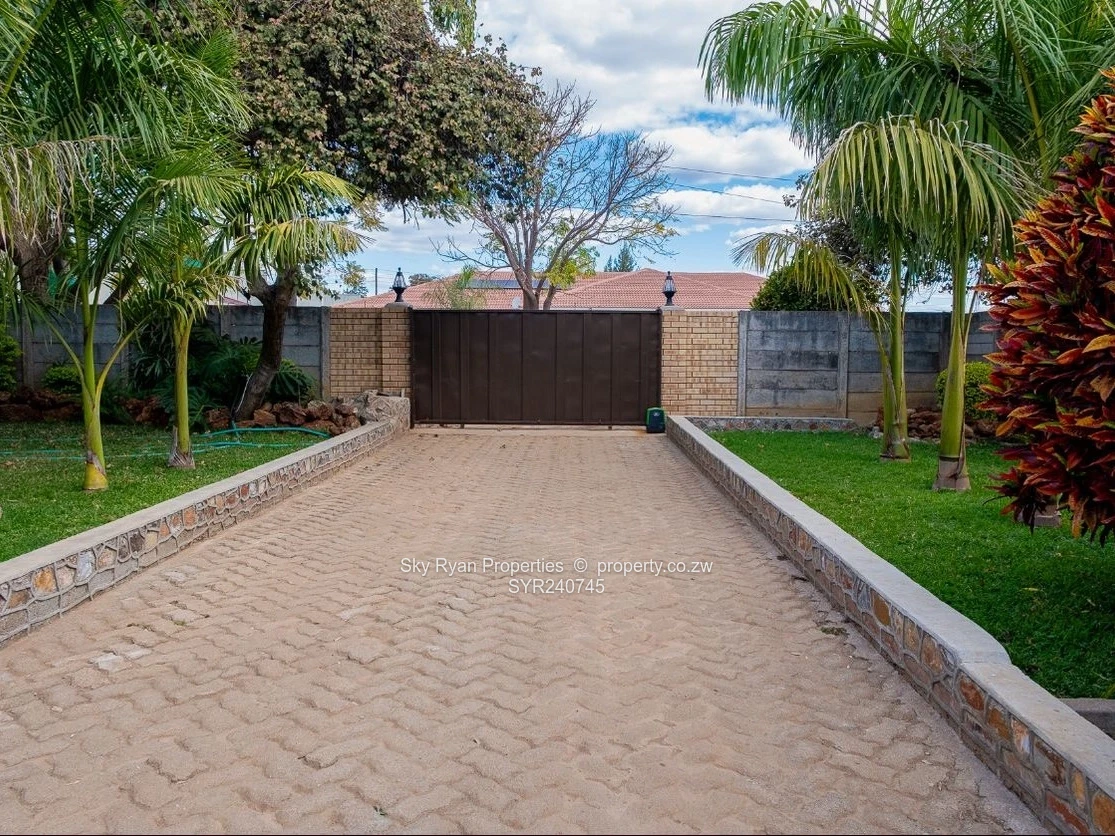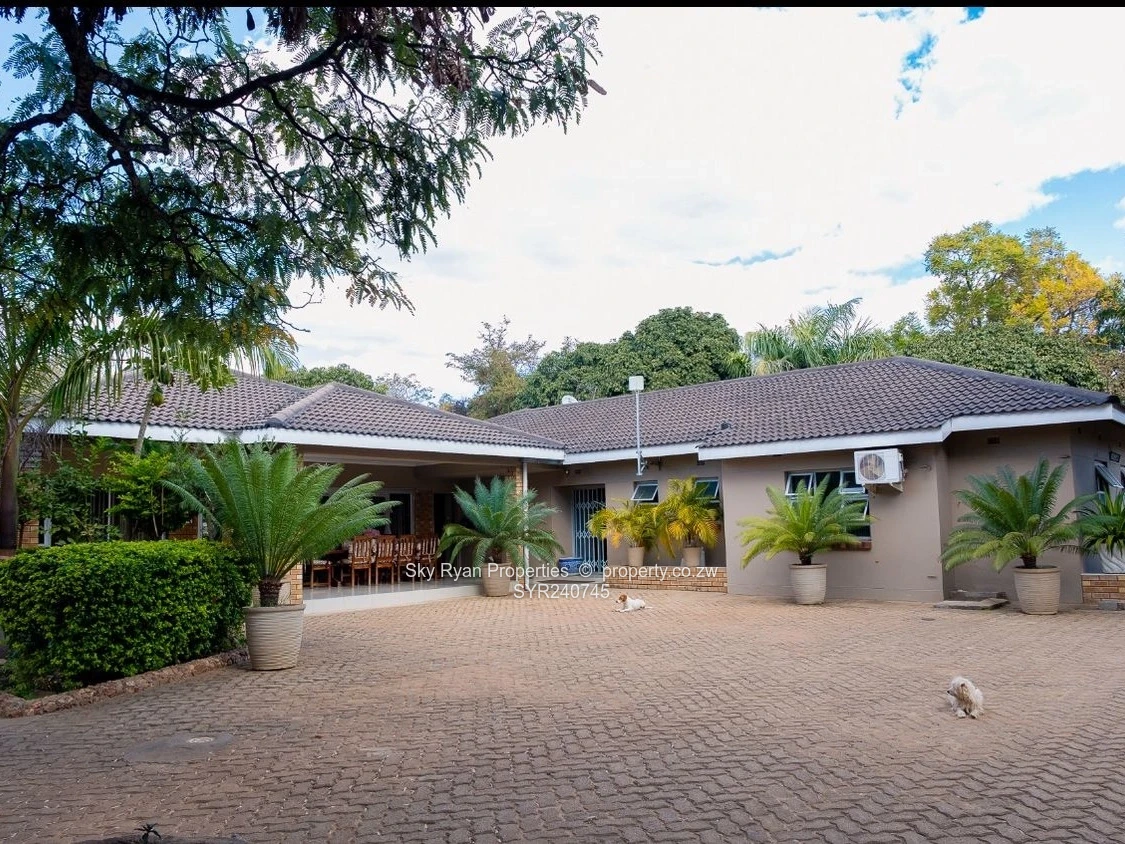 Kwekwe Southwood 4 beds 3 ensuites 2 lounges open plan dining and kitchen ;2 bedroom cottage with 2 bathrooms with furniture borehole well maintained garden walked and gated Title Deeds asking 400k