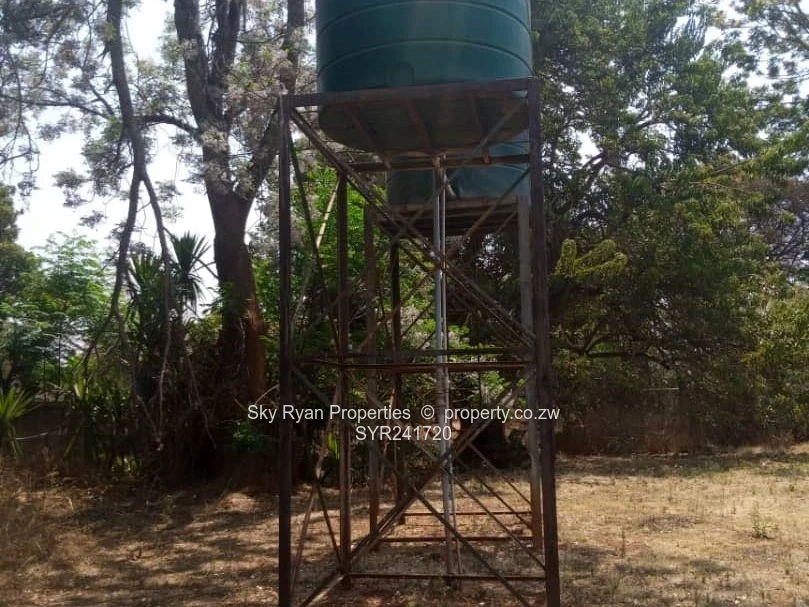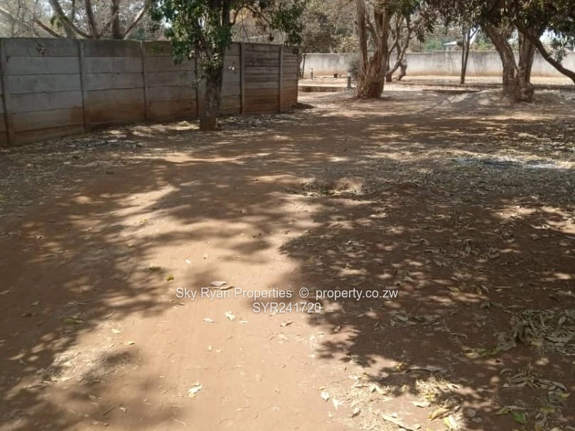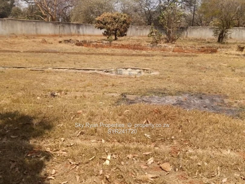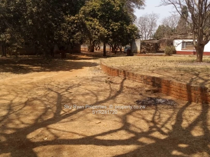 Marlborough along Harare Drive and between Adylinn and Elizabeth Windsor Roads. There is an old 4 bedroomed house mes, lounge, dining, study, kitchen, pantry, toilet, bathroom, 2 passages, 2 enclosed verandahs. Abutting the main house is a garage that can accommodate 4 cars. The garages have screen gates. There is a staff quarters( 2 rooms, toilet/bathrooms).There is a borehole but it has dried-up.There is a disused pool, there are 2 water tank. It is walled and gated. Loam soils. Land area over 9000m2. Deed. Good area. Lots of potential. $550k