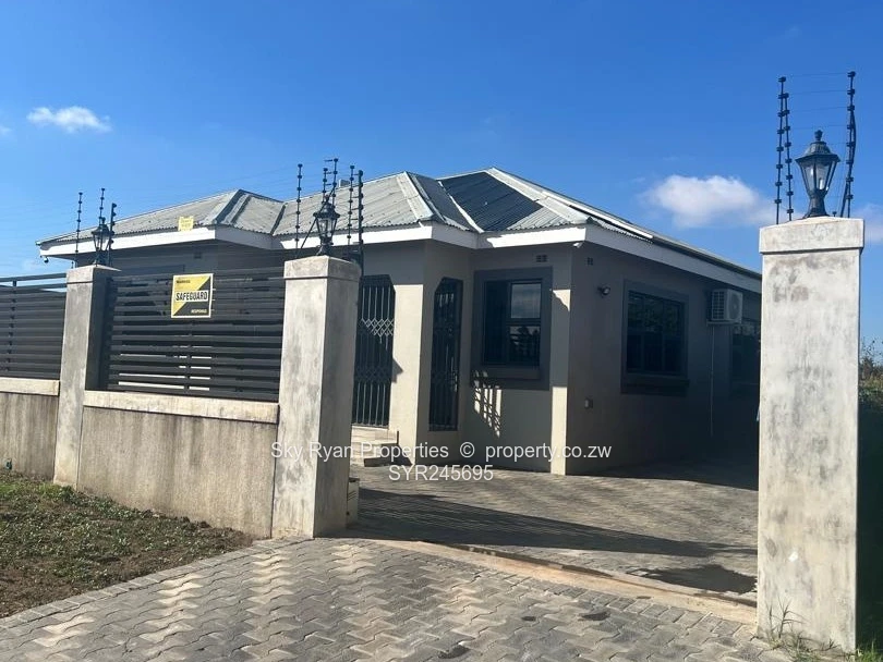 240sqm, air conditioning, 8kw victron with 24 solar panels, borehole, sewer reticulation, street lighting, electric fence, surveailance cameras, alarm system, 2000L water tank, open kitchen, 3 bedrooms, 2 bathrooms, dining room, living room, backyard storage space, full property paving. gas geyser, fitted cupboards and wardrobes, durawall, security lighting.