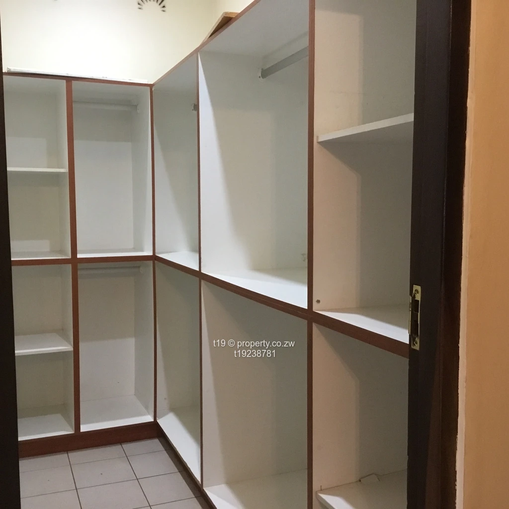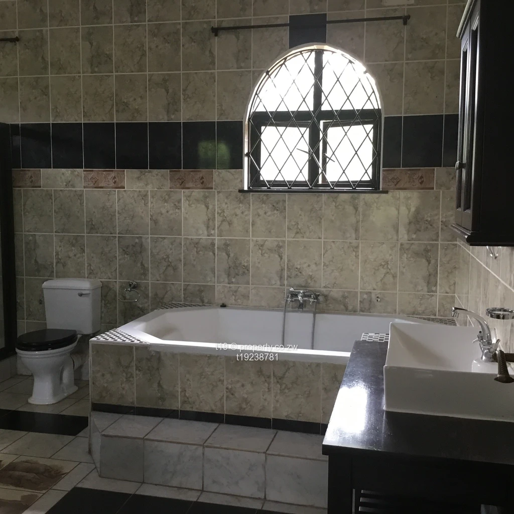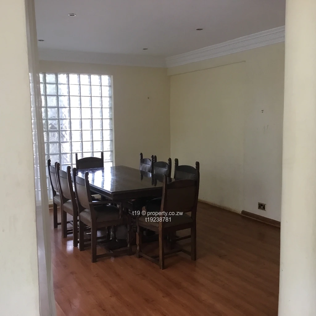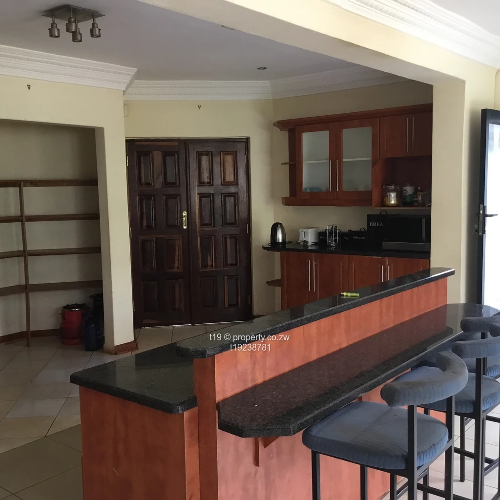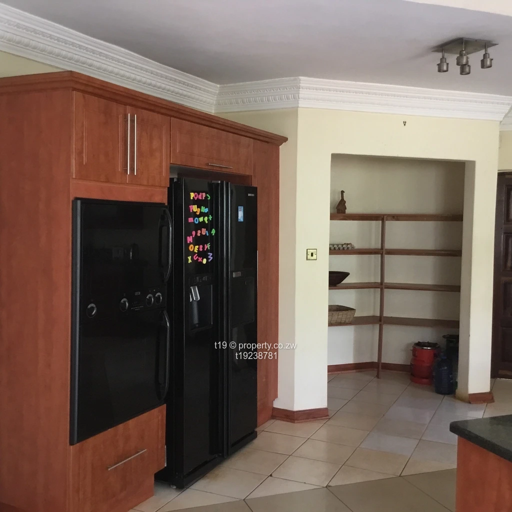 Perfectly located property approximately 2km from Sam Levy’s Village and just off Borrowdale road is a beautiful 5 bedroom house with 3 en-suite bathrooms and dressing areas. The 2 upstairs bedrooms have balconies. There are 3 lounges, one is upstairs. The kitchen is fully fitted with electric, gas hob, and oven. There is an open plan dinning, lounge and kitchen.