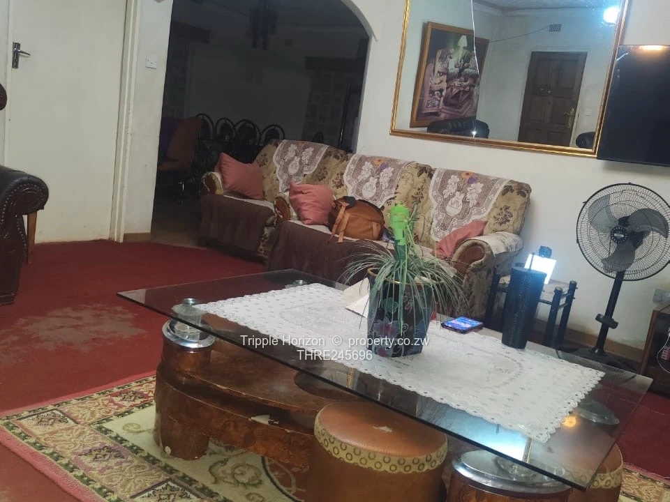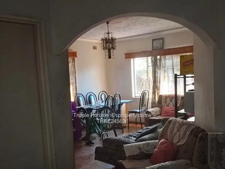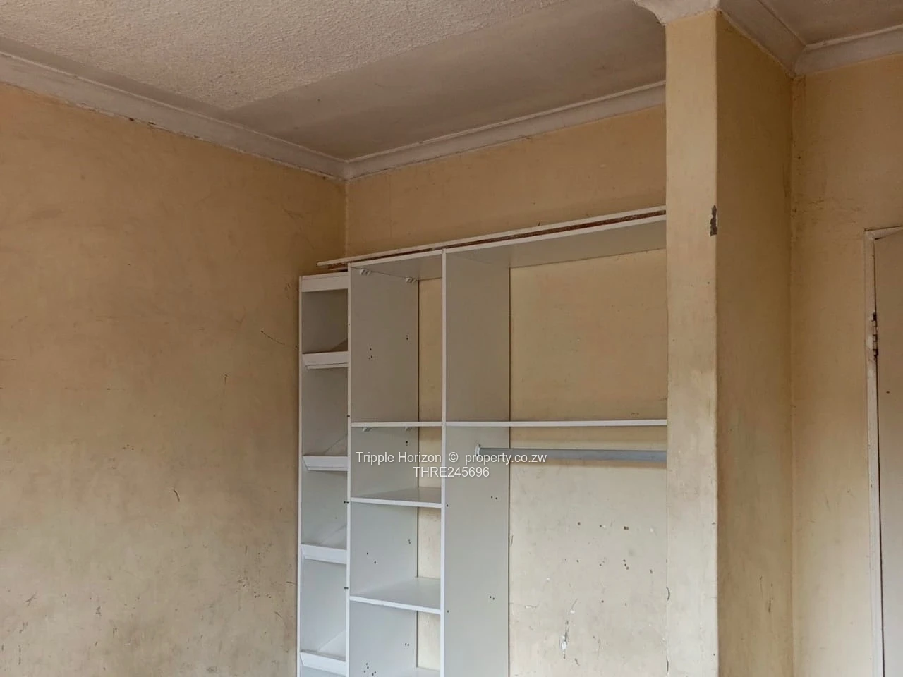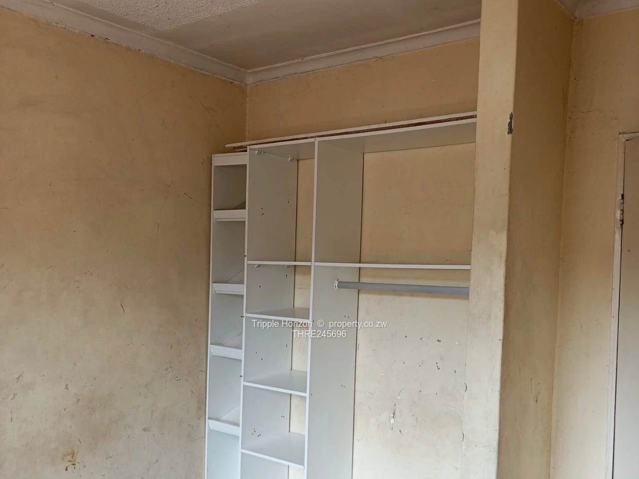 Inside you’ll find a practical, fitted kitchen with ample storage cupboards, a dark worktop and space for appliances (microwave shown), ready for everyday cooking. The layout provides good natural light and practical living areas ideal for a growing family or investors seeking rental income. The property benefits from its own borehole, ensuring reliable water supply — a key advantage in Harare South.