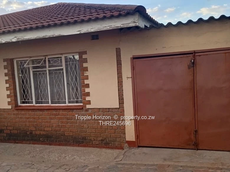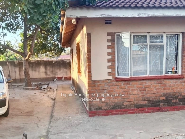 Solid 4-bedroom, 2-bath family home in Mainway Meadows, Harare South, set on a generous 600 m² stand with a comfortable 150 m² of living space. The house presents a sturdy facebrick façade with tiled veranda and sturdy white security doors and window grilles, offering immediate kerb appeal and peace of mind. A wide, diagonal-painted metal gate and paved driveway lead into a fully walled compound with space for multiple vehicles and an established tree that provides shade and a pleasant outdoor area.