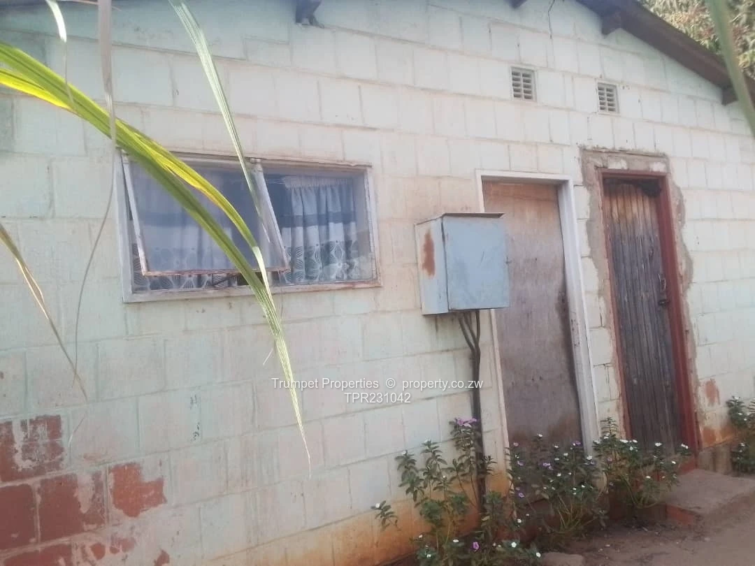 Solid investment in Mufakose — a compact 2-bedroom, 1-bath home on a 200 m² stand with a 90 m² footprint. The house is built in concrete block with a corrugated roof and secure, barred windows, pictured with established shade trees (mango) and a small vegetable patch at the side. A metal electrical box and external meter are visible, and the property benefits from a sewer system connection, relieving you of septic maintenance. There’s room for a small yard or parking — shown by the driveway space beside the house — and the layout lends itself to straightforward renovation or rental use. Ideal for first-time buyers or investors looking for an affordable, high-density Harare unit with immediate occupancy potential and scope to add value through cosmetic upgrades and extensions. Schedule a viewing today to see the potential in person.