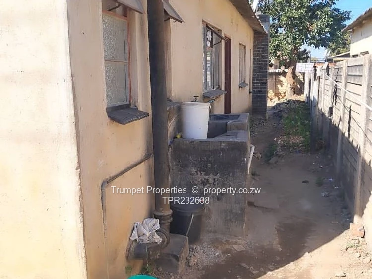 Spacious 5-bedroom family home in Sunningdale (Harare High Density) on a secure 250 m² stand with a 180 m² building footprint — ideal for a growing family or investor. As seen in the photos, the single-storey house sits behind a full perimeter wall and sturdy red metal gate, offering immediate privacy and off-street parking in the yard. The covered verandah with brick pillars provides a welcoming entrance and a shaded spot for relaxation. Interior includes five good-sized bedrooms and one bathroom (blue toilet shown), with intact window frames and security bars throughout for peace of mind.