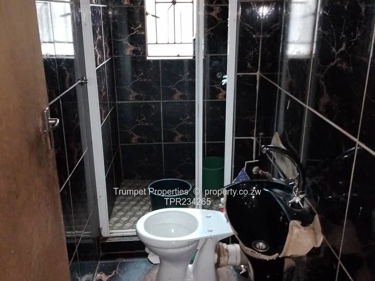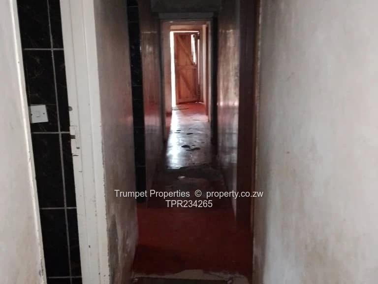 Spacious 5-bedroom, 2-bath family home in Budiriro (Harare High Density) on a 250 m² stand with a 130 m² building footprint — ideal for a growing family or investor looking to add value. The property is fully walled with a secure front gate and burglar-bars on windows. The large lounge features a timber-paneled ceiling and tiled floors, offering comfortable living space. The kitchen is fitted with wooden cupboards, black marble-style splashback tiles, stainless double sink and ample bench space (some cupboards need attention) — there is also space for two fridges as shown. Bathrooms are fully tiled in a striking dark tile; the main en suite includes a shower and bathtub. Outside you’ll find a small verandah/porch, a usable yard area and a roof water tank complemented by municipal water supply. The house needs some cosmetic finishing and repairs, giving the new owner an excellent opportunity to refurbish and increase value quickly. Conveniently located in Budiriro near local amenities and transport routes. Contact us to arrange a viewing and see the potential for yourself.