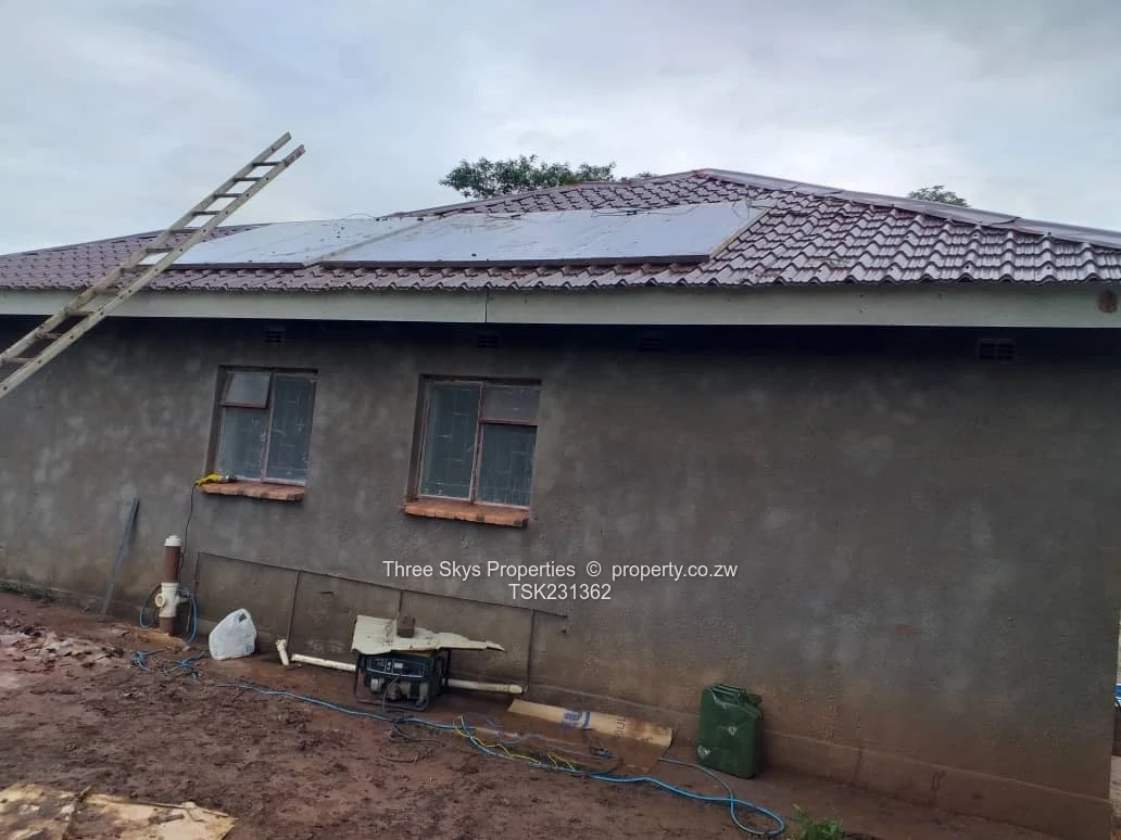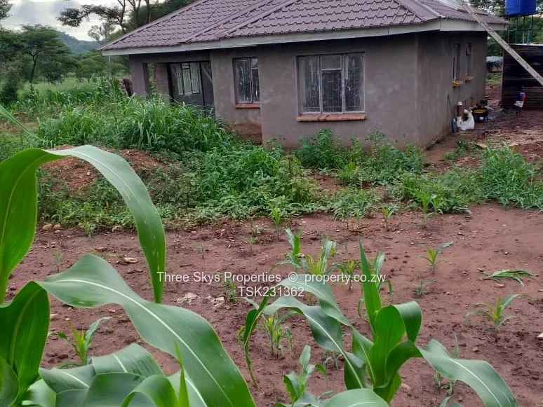 Bindura 3375sqm with a 3 bedroomed cottage with ensuite floor tiled ,roofed with chromadek ,ceiling, fowl run . Prolific borehole water. Solar power. Council Cession