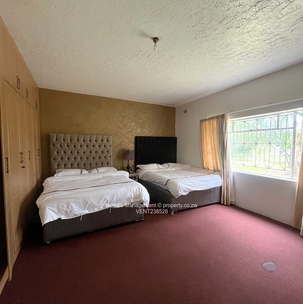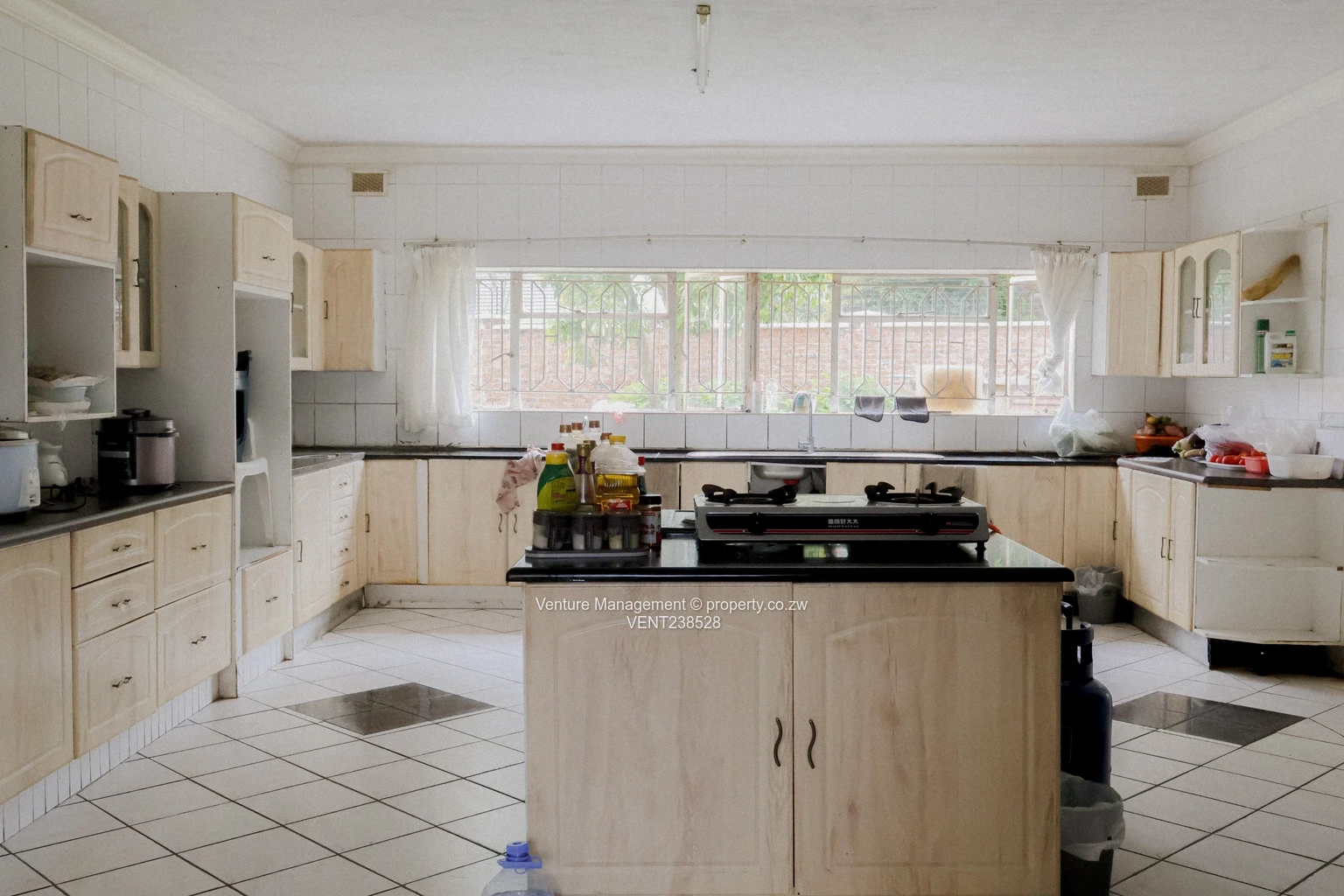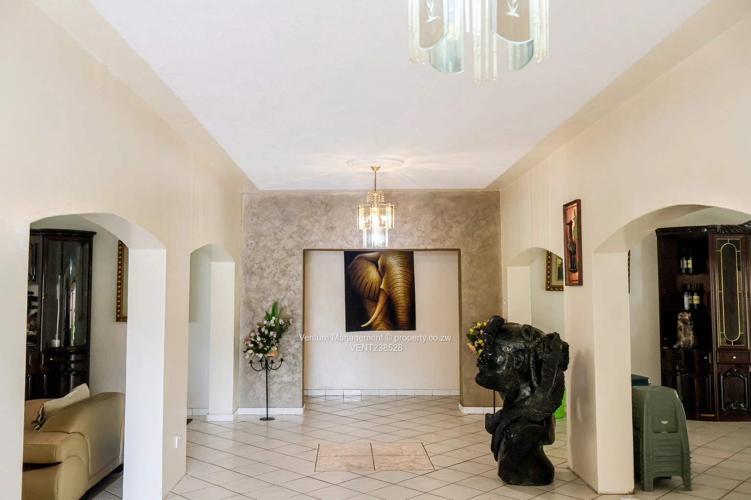 This is a 6-bedroom double-storey house with two of the bedrooms ensuite, main bedroom has its own balcony and a built in walk in closet area that leads to the bathroom area. All bedrooms have BICs. For upstairs and downstairs, the house has two separate bathrooms each with a bathtub, a shower and a sink, two separate toilets each with a sink, three lounges, upstairs office, dining area, breakfast nook area, large kitchen, pantry, scullery. Garage with store room. Outside parking shed. Prolific borehole, water tank, electric fence, electric gate, dura wall, solar system, solar geysers. Three room cottage with shower&toilet used as caretaker accommodation. Large garden area behind cottage.