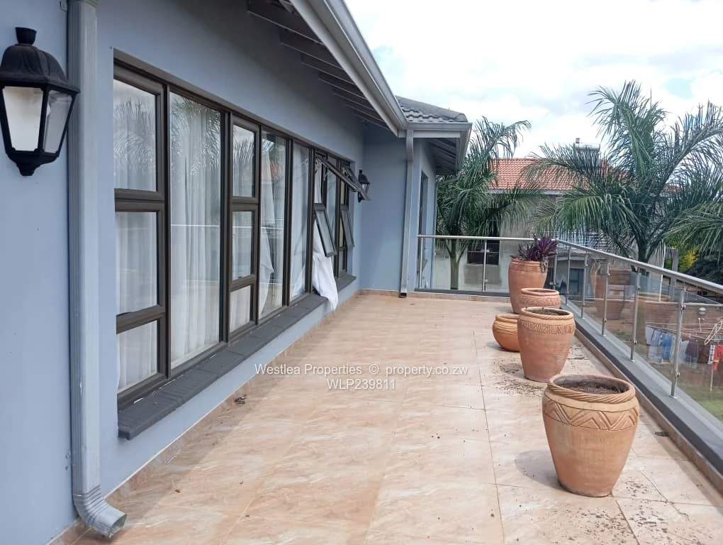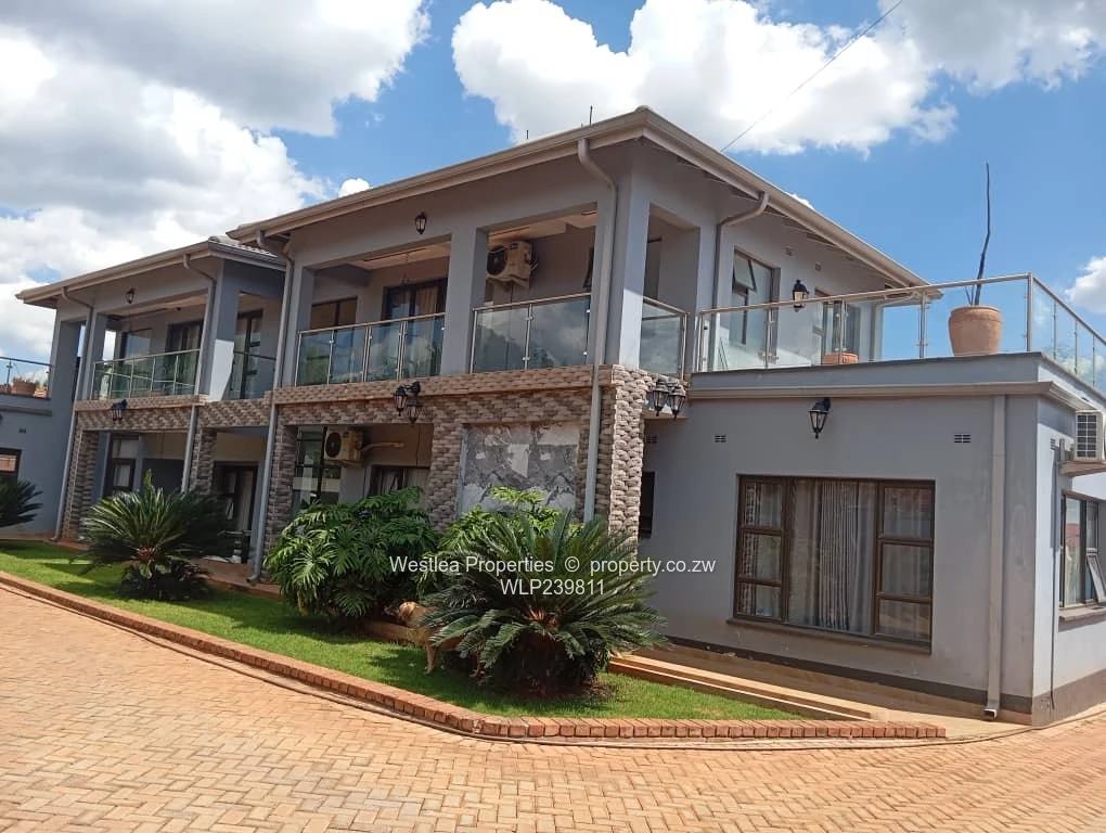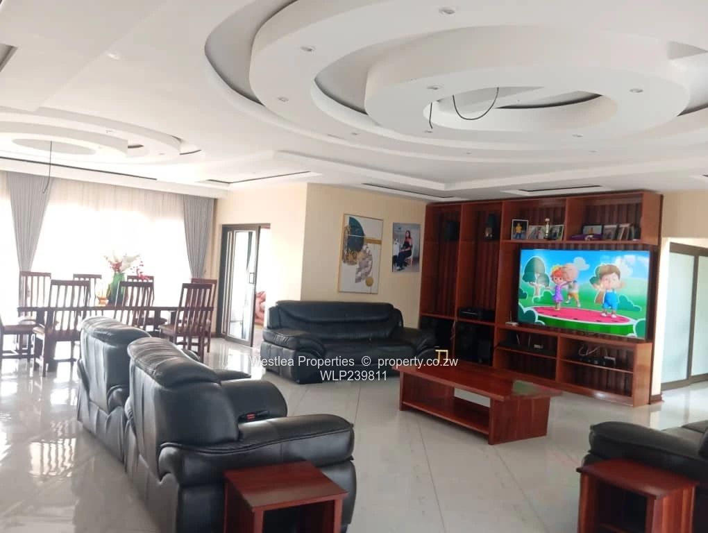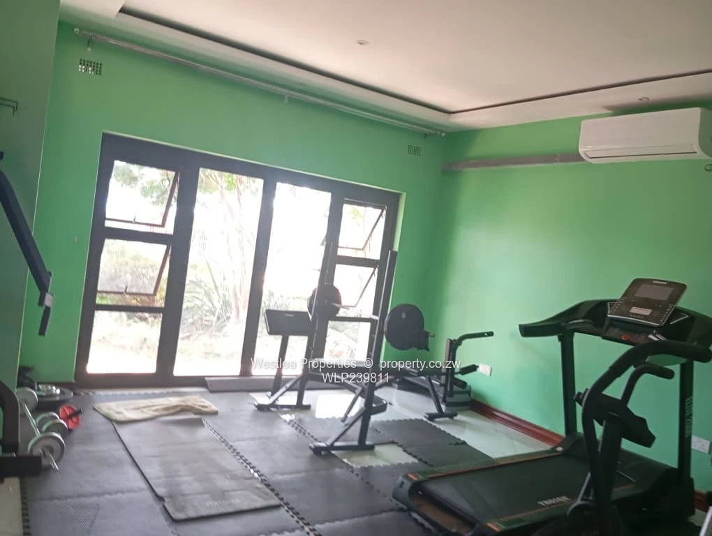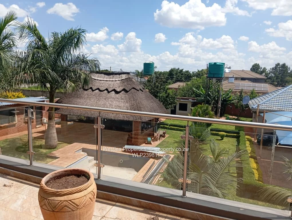 Proud to offer this state of the art ,modern 5 bedroom mansion .Tucked in a quite and serene neighborhood is a massive double storey situated in the heart of quiet surbubs of Harare North. The downstairs offers an open plan ,spacious lounge and dining area .It also offers an entertainment area that comes with a bar and a gym room , morden fitted kitchen with great finishings ,walk in laundry area and pantry .As we move upstairs we are welcomed by a spacious lounge that leads us to a separate wing with its own kitchen , bathroom and a play room.The ensuited main bedroom with separate his or changing closets , is tucked upstairs and offers beautiful scenery and views from the balconies. The magnificent gem offers breathtaking views and giving a great outdoor living from the well manicured garden that comes with a gazebo , and entertainment area , swimming pool that needs a bit of tender loving care.The house comes with a neat 3 bedroomed cottage for investment and extra income.