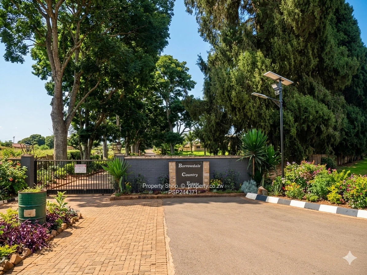 Prime 2,000 m² stand for sale in sought-after Borrowdale Country Estate. All serious offers will be considered. Viewing strictly by appointment. Well run gated community with a strong owners association creating a serene and tranquil environment. Ready for title deeds. Main-road frontage in close proximity to Glen Forest, Hogerty Hill Shopping Complex and the recent Northgate Complex. Well-maintained tarred road and sits just inside an attractive gated entrance featuring mature cypress trees, stone signage and neat, landscaped verges. Wide tarred internal roads add to the estate feel visible in the images, making this plot ideal for a luxury family home, This land combines visibility and privacy in one of Harare’s desirable northern suburbs. Secure this opportunity — prime bids and viewings invited.