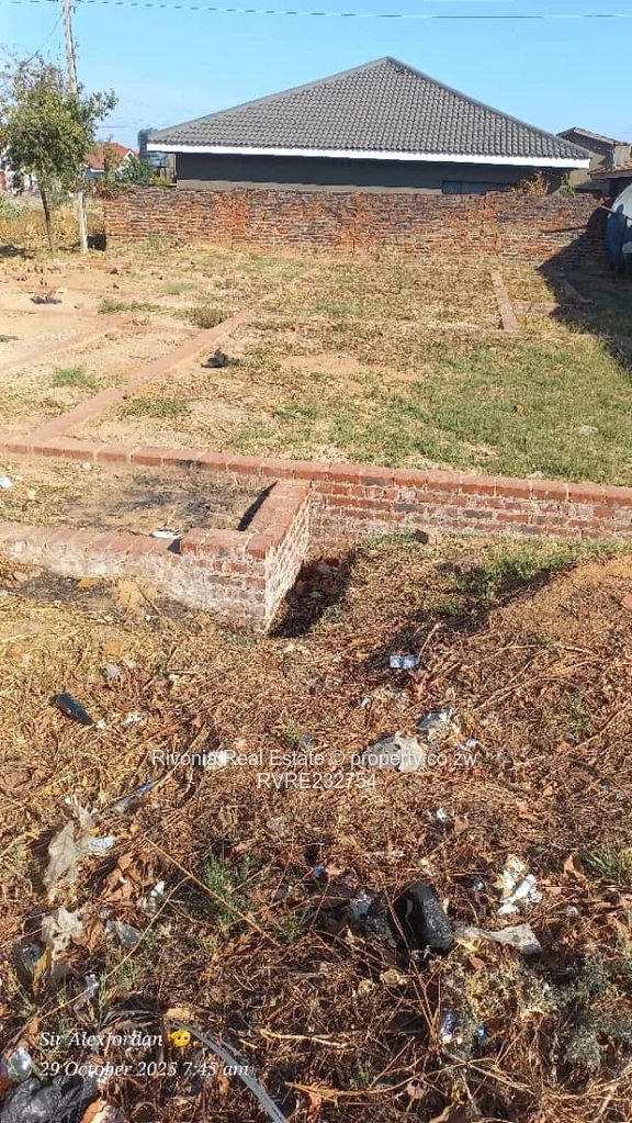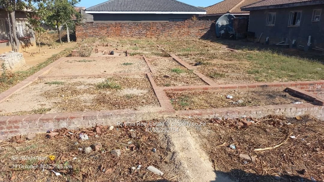 Prime 300 m² residential stand in Damofalls, Mashonaland East — ready for immediate development. As seen in the photos, the plot is level and cleared, with neat low brick plinths marking the building footprint and perimeter, plus visible shallow drainage channels that connect into the municipal system. The site fronts a tarred road for easy access and sits among established homes with finished pitched roofs, giving a secure, settled neighbourhood feel. Municipal water and sewer connections are available, simplifying services installation and reducing build lead times. Sunshine and open sightlines across the site make it ideal for a compact family home, rental unit or investor holding. Excellent opportunity to secure a serviced stand in Damofalls — bring plans and start construction. Contact to view and confirm services on site.