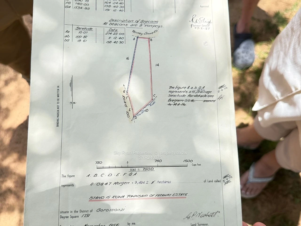 9.4 hactares(23 acres) with extensive road frontage, including zesa and water .