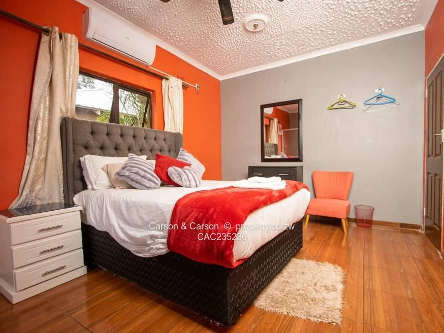 A beautiful holiday resort lodge in the heart of the resort town of Victoria Falls, featuring 3 separate houses with a combined total of 10 spacious bedrooms with ensuites, lounges and reception area, fully furnished, 2 sparkling swimming pools, a prolific borehole and being sold as business going concern. It is always fully booked throughout the year. Get in touch for viewing arrangements.