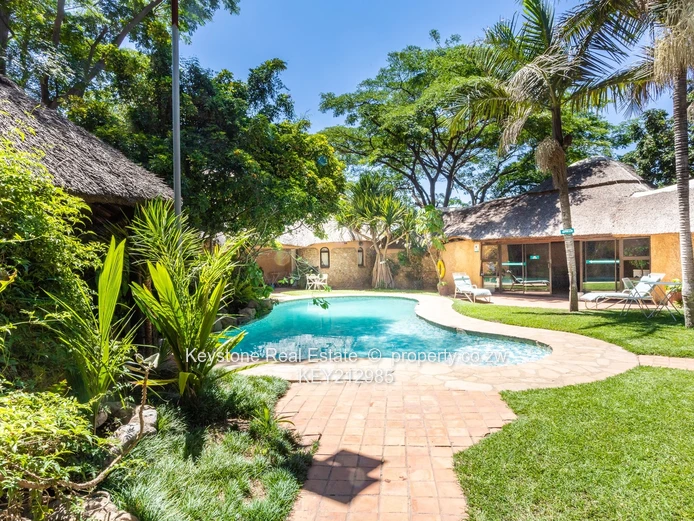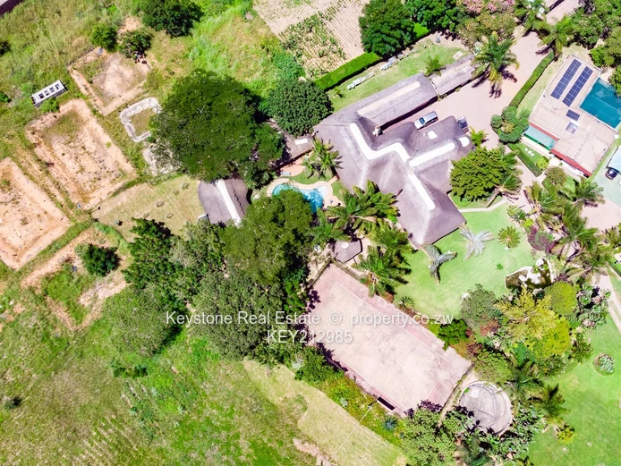 Nestled on a sprawling 3-hectare estate in the serene Spitzkop area, just off Bulawayo Road (A5), this property offers a unique blend of natural beauty, luxurious accommodations, and exceptional event spaces. Escape the city's hustle and bustle and discover a hidden gem where tranquility and opportunity abound. It comprises of: