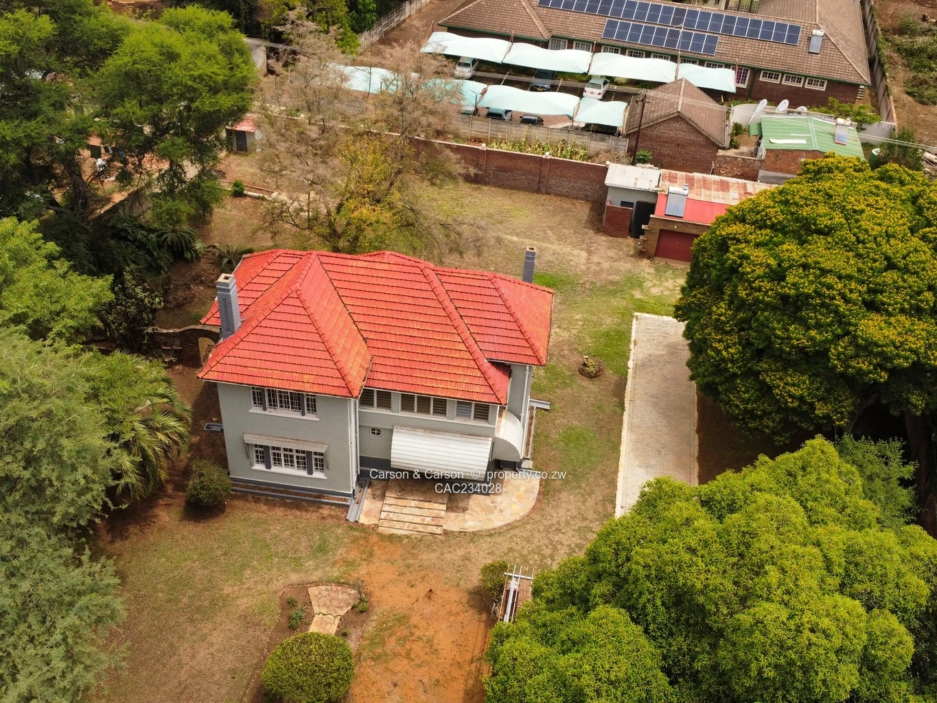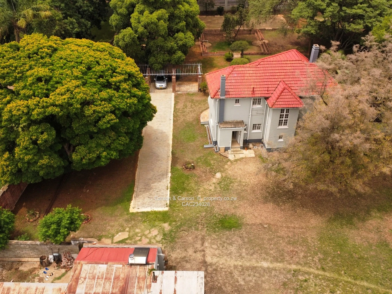 Prime Belgravia opportunity — charming two-storey office on a generous 3,900 m² stand with a 180 m² footprint. Set behind a secure boundary wall and gated entrance, this character property combines classic curb appeal with practical commercial potential. The red-tiled roof and wrap-around verandah announce a solid, well-built structure surrounded by mature shade trees, lawns and established garden beds — ideal for a boutique firm, professional practice, executive HQ or conversion to mixed-use. A long paved drive leads to a hardstand/parking area and outbuilding space, providing easy client access and staff parking. Interiors retain period features including high ceilings, fireplaces in reception rooms, carpeted office spaces and private rooms that can be tailored to meeting rooms, offices or consulting suites. Practical extras include window security, an internal staircase linking floors, and a borehole for reliable water supply — a real asset in Harare. With substantial land available for expansion, additional parking or landscaped client areas, this property offers flexibility and strong investment upside in sought-after Belgravia, Harare North. Viewing recommended for buyers seeking a distinctive, well-located office compound ready for immediate occupation or refurbishment.