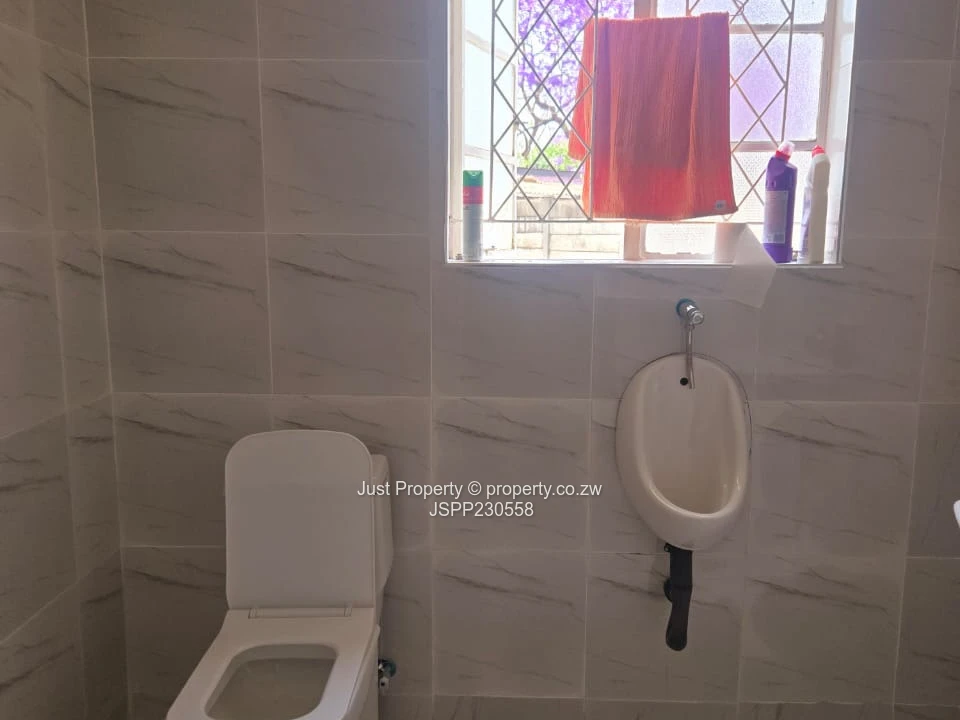 Prime Eastlea commercial opportunity — well-presented single-storey office on a generous 1,190 m² stand with 300 m² of usable building space. The property welcomes clients with a glass-fronted reception and wide paved forecourt with ample parking (photos show the clear, secure courtyard and easy vehicle access). Interiors are bright and practical: tiled floors, glass-block feature windows and a central corridor leading to several private offices and an open-plan working area currently set up with desks and shelving. A neat fitted kitchen and staff washroom facilities (newly tiled bathrooms with urinal and WC visible) support daily operations, while municipal water ensures reliable supply. The layout includes a private consulting/manager’s office, meeting space and storage rooms — ideal for professional services, clinics, small corporate HQ or training centres. Well-maintained façade, secure windows and clear signage potential make this a turnkey investment in Harare East. Arrange a viewing today to appreciate the space and location. Contact for full details and price.