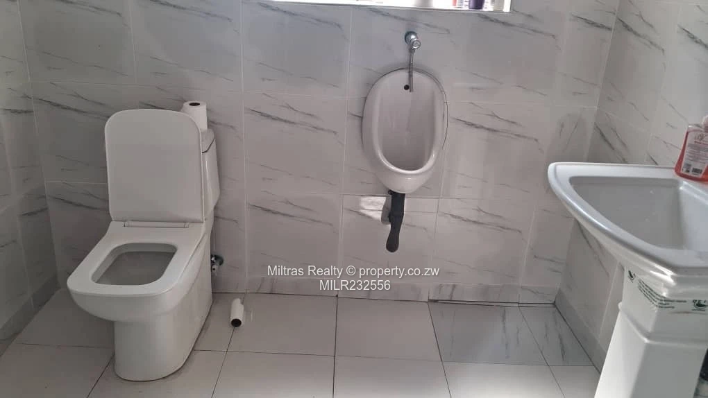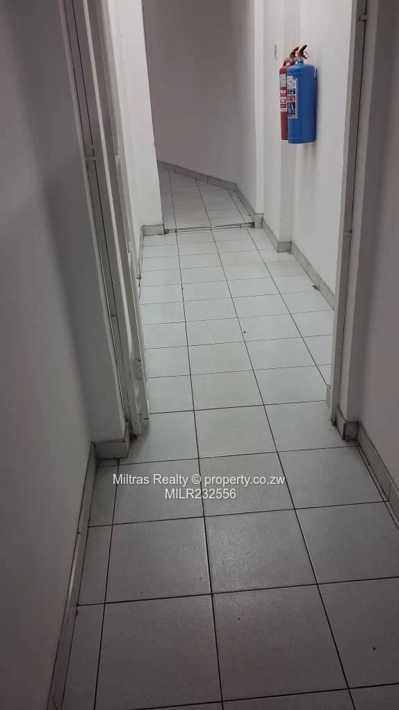 Prime commercial opportunity in Eastlea, Harare East — 1,100 m² stand with 300 m² of well-presented buildings, now available for sale. The property features a large paved forecourt ideal for parking, deliveries or a customer drop-off area, secure perimeter with gated access and two low-rise, freshly painted office blocks with wide glazed entry and multiple fitted rooms. Interiors include tiled corridors and reception areas, a compact fitted kitchen with durable worktops and orange cabinetry, and clean, fully tiled restrooms equipped with both WC and urinal facilities. A working borehole provides reliable water supply and a solar geyser on the roof reduces utility costs — practical infrastructure for business continuity. Neat finishes throughout, fire extinguishers in communal areas and easy circulation between buildings make this site suitable for a range of uses: corporate offices, medical clinic, training centre, light showroom or hospitality conversion. Conveniently located in the heart of Eastlea with good access to Harare’s main routes, this property offers immediate income potential or a solid base for redevelopment. Contact us to arrange a viewing and explore the versatile commercial possibilities.