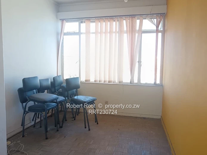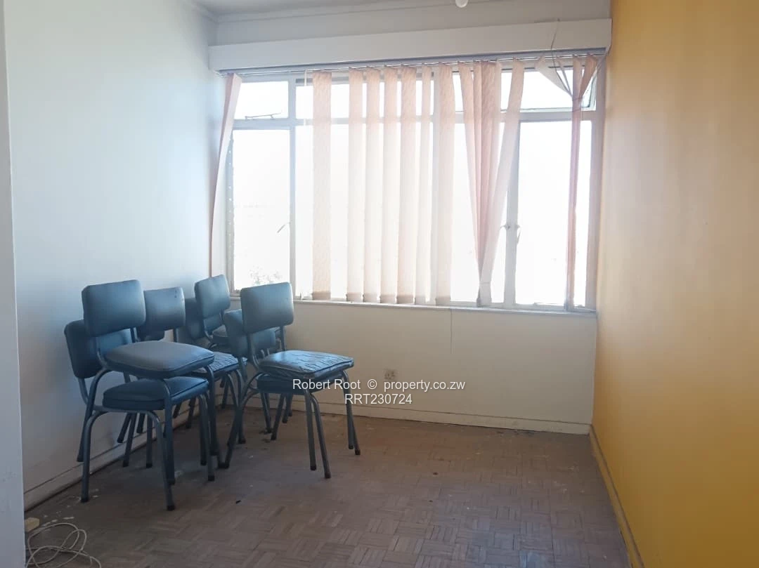 Presenting a 4th-floor Avenues |CBD flat featuring 3 bedrooms with built-in cupboards, a shared bathroom with a separate toilet, a kitchen fitted with wooden cabinets, and a combined lounge and dining area. The property is currently used as an office with the total rooms translating to 5 offices including a large open plan space. The Elevator is operational. The unit includes 1 parking bay. Ownership is a Sectional Title Deed. Reliable Zesa and Water in a very convenient location in the Avenues within walking distance of the CBD.