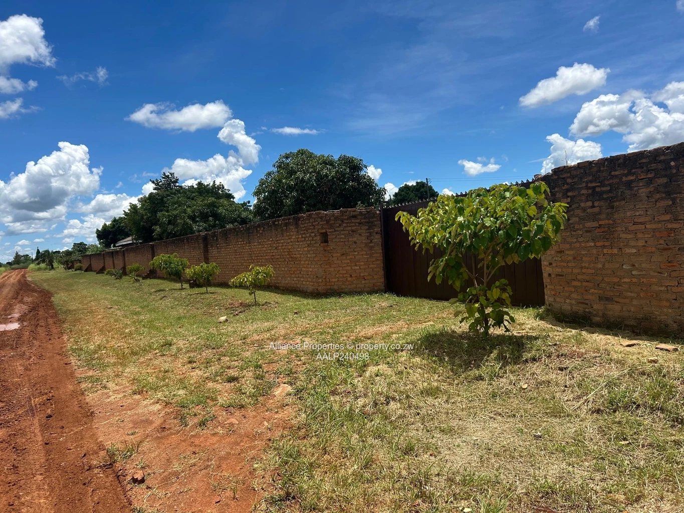 Exceptional 3.8ha property located near Bulawayo Road, featuring a Incomplete 5-bedroom main house built to roof level, a 2-bedroom cottage, and numerous extras. Enjoy the convenience of a borehole, and secure walled and gated.