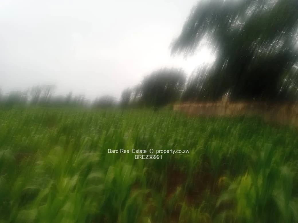 Prime development opportunity in Borrowdale, Harare North — 26 hectares of level to gently undulating land with excellent subdivision potential. The rare parcel is lush and productive (currently planted with a green maize crop), punctuated by mature shade trees. A partial boundary wall and established trees along one edge provide immediate privacy and a visual cue of main road frontage and neighbouring amenities.