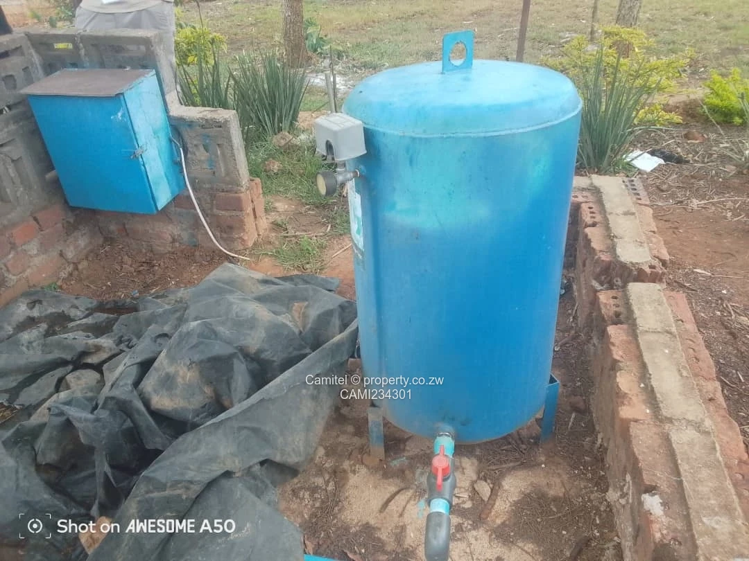 An investment with lots of potential its a residential stand measuring 14200 square metres with a 2 bedroomed cottage, prolific borehole, lots of indigenous trees, unused swimming pool, very ideal for cluster homes, ready for Title Deeds