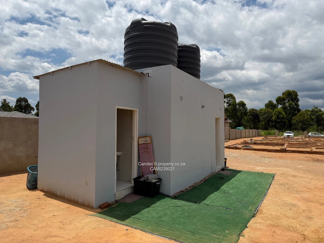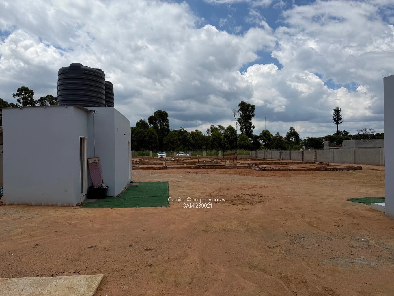 2100sqm Arlington stand with a modern two bed cottage that comes with a fully fitted kitchen with an open plan lounge that has a veranda.On the stand there is a foundation for a modern double storey 5bed house with fully approved plan.A tank room with 10 000l tank that has a staff quarters the property is walled and gated.